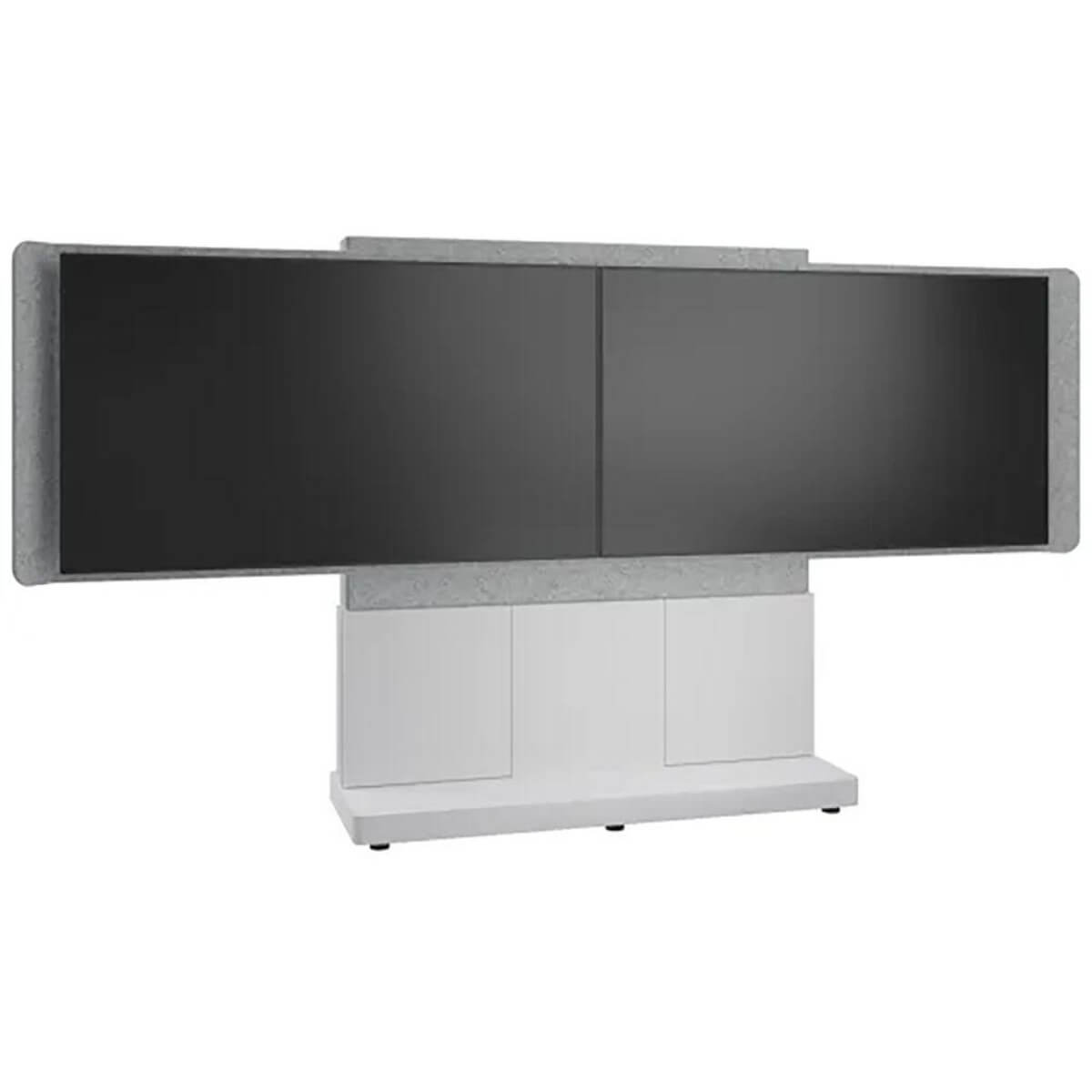 The Forum 3 Bay (66" Wide) Free-Standing Display Stand is designed for workspaces when hybrid collaboration is necessary in either open or closed spaces. This is how Hybrid works. A Free-Standing Display Stand with an included Chief Fusion Modular Extrusion and fixed interface brackets for a dual 50" to 55" displays wrapped in acoustic felt for crystal clear meetings.