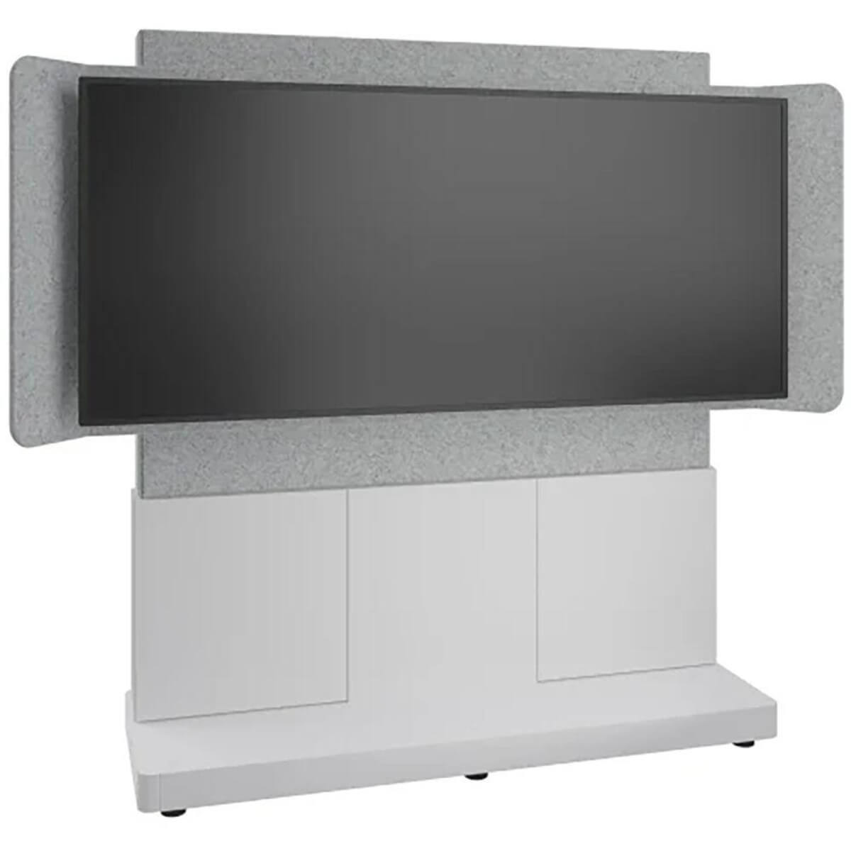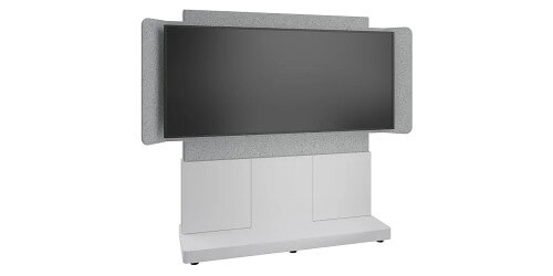 The Forum 3 Bay 66" Wide Free-Standing Display Stand is designed for workspaces when hybrid collaboration is necessary in either open or closed spaces. This is how Hybrid works. A Free-Standing Display Stand with an included Chief Fusion Modular Extrusion and fixed interface brackets for a single 81" 21:9 Ultra-Wide aspect ratio display, like the Jupiter Pana 81, wrapped in acoustic felt for crystal clear meetings.