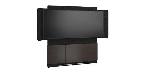 The Forum 3 Bay 66" Wide Floor-to-Wall Display Stand is designed for workspaces when hybrid collaboration is necessary in either open or closed spaces and can be secured to a wall. This is how Hybrid works. A Floor-to-Wall Display Stand with an included Chief Fusion Modular Extrusion and fixed interface brackets for a single 81" 21:9 Ultra-Wide aspect ratio display, like the Jupiter Pana 81, wrapped in acoustic felt for crystal clear meetings.