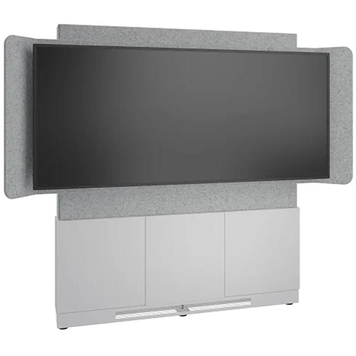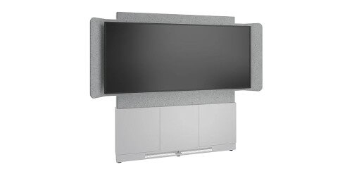 The Forum 3 Bay 66" Wide Floor-to-Wall Display Stand is designed for workspaces when hybrid collaboration is necessary in either open or closed spaces and can be secured to a wall. This is how Hybrid works. A Floor-to-Wall Display Stand with an included Chief Fusion Modular Extrusion and fixed interface brackets for a single 81" 21:9 Ultra-Wide aspect ratio display, like the Jupiter Pana 81, wrapped in acoustic felt for crystal clear meetings.
