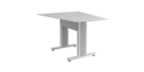 The 59" (150cm) Forum Angle shaped table allows for everyones face to be seen by the remote participants and still easily interact in-person for meeting equity Supports 3 to 5 people and 38" counter height table