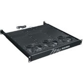 Locate fans directly above vents on hot equipment to get the hot air moving.Innovative sliding rail system allows positioning of the tray at the front of the rack or towards the rear to match equipment vent locations. Can also be mounted front-to-back if desired to better match vents.Uses from 3 to 8 quiet 4" DC fans (69CFM per fan).8 fan mounting positions let you locate fans exactly where needed.Energy saving thermostatic control for automatic on/off when needed.Powered by a single cord.Uses only one rackspace.Adjustable mounting range of 18" to 32".Thermostatically Controlled fans turn on when the temperature reaches 87° F/30° C, and turn off at 85° F/29° C.