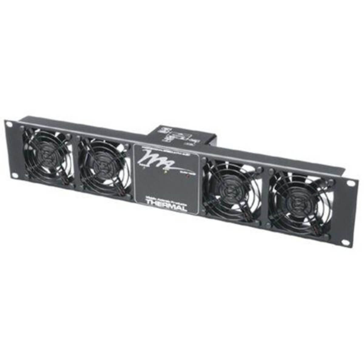 The two rackspace Ultra Quiet Fan Panel System provides smart cooling and monitoring to ensure a reliable installation in areas where fan noise is not an option, including boardrooms, classrooms, offices, houses of worship, etc. Thermostatic, proportional speed DC fan control ensures ultra quiet operation by varying fan speed based on enclosure temperature. Overtemp notification, local and remote, offers additional operation monitoring. A unique feature of the system provides notification in the event of fan failure via a local display or remote signal to an external alarm device. 100 CFM cooling capacity Digital processor varies fan speed based on enclosure temperature for ultra quiet operation On-board digital processor monitors rack temperature via external sensor Local and remote notification of over temperature and fan fault can be sent to a control system
