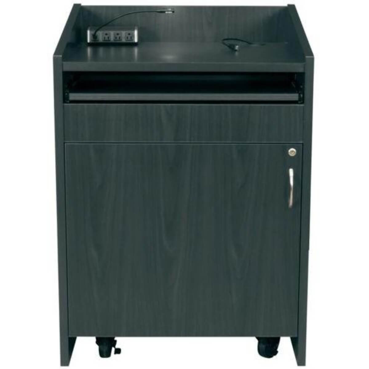 The L2 Series Lectern is the only budget-friendly lectern that comes complete with a rack, power, thermal and cable management and connectivity, delivering the Middle Atlantic hallmark of support and security for AV systems. The contemporary, Sota style design paired with durable melamine material delivers an aesthetically-pleasing option optimized for mobility. Available in easy-to-order, pre-configured models with or without a flip up shelf for additional surface space, the L2 Series Lectern delivers an affordable, all-in-one solution that supports presentation delivery in any room or auditorium. Features: Connectivity - Includes a Wiremold Desktop Power Center Slim with 3 15A outlets, USB-A and USB-C charging ports. Sleek, modern Sota style design with durable melamine finish in 3 popular color options. Up to 12RU of equipment mounting. Locking, heavy duty 4" casters. Storage designed to accommodate the most popular document cameras and personal/small device storage. Cable management systems includes 5 grommets total, with 2 in the top, 1 on each side and 1 on the bottom. Hinged door on front with handle. Slide out keyboard shelf with "pencil lip" to prevent items from sliding off rear of shelf. Ships assembled.
