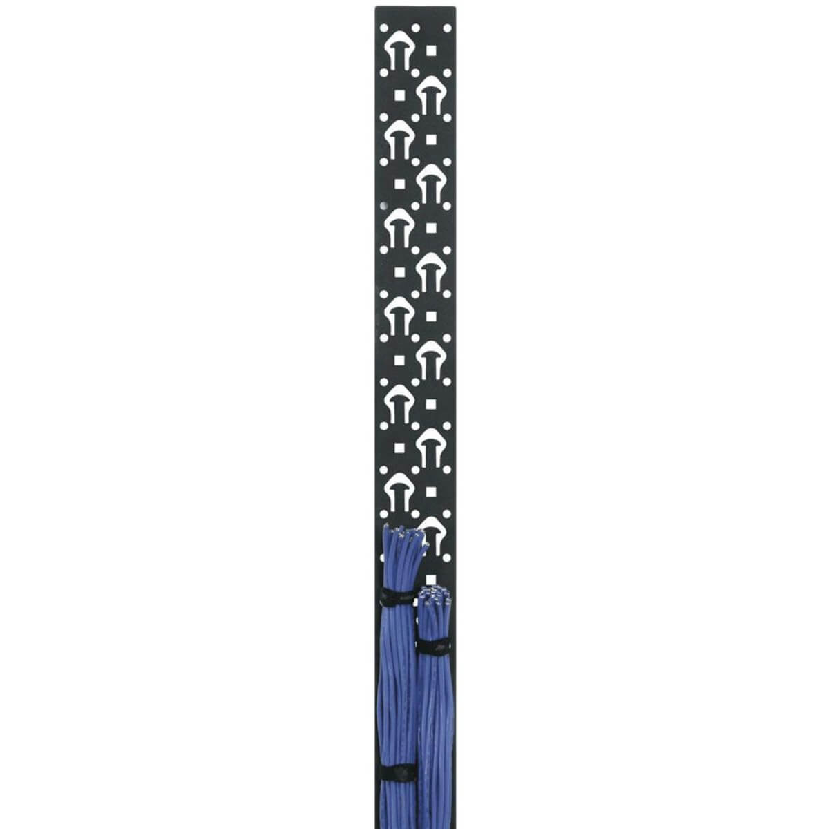 Perforated steel lacer strips mount vertically to rackrail brackets and provide many locations for securing cable ties. Lacer strips can be cut down easily to smaller sizes. LACE-OWP and LACE-OP strips feature tie posts for sliding on pre-wrapped cable bundles using cable ties or up to 3/4-inch wide Hook and Loop straps. Some lacer strips also accept cage nuts or mounting of select power strips for increased versatility.