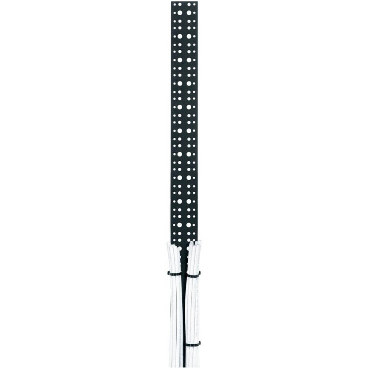 Perforated steel lacer strips mount vertically to rackrail brackets and provide many locations for securing cable ties. Lacer strips can be cut down easily to smaller sizes. LACE-OWP and LACE-OP strips feature tie posts for sliding on pre-wrapped cable bundles using cable ties or up to 3/4-inch wide Velcro® straps. Some lacer strips also accept cage nuts or mounting of select power strips for increased versatility.