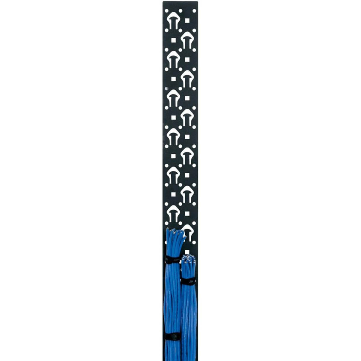 Perforated steel lacer strips mount vertically to rackrail brackets and provide many locations for securing cable ties. Lacer strips can be cut down easily to smaller sizes. LACE-OWP and LACE-OP strips feature tie posts for sliding on pre-wrapped cable bundles using cable ties or up to 3/4-inch wide Velcro® straps. Some lacer strips also accept cage nuts or mounting of select power strips for increased versatility.