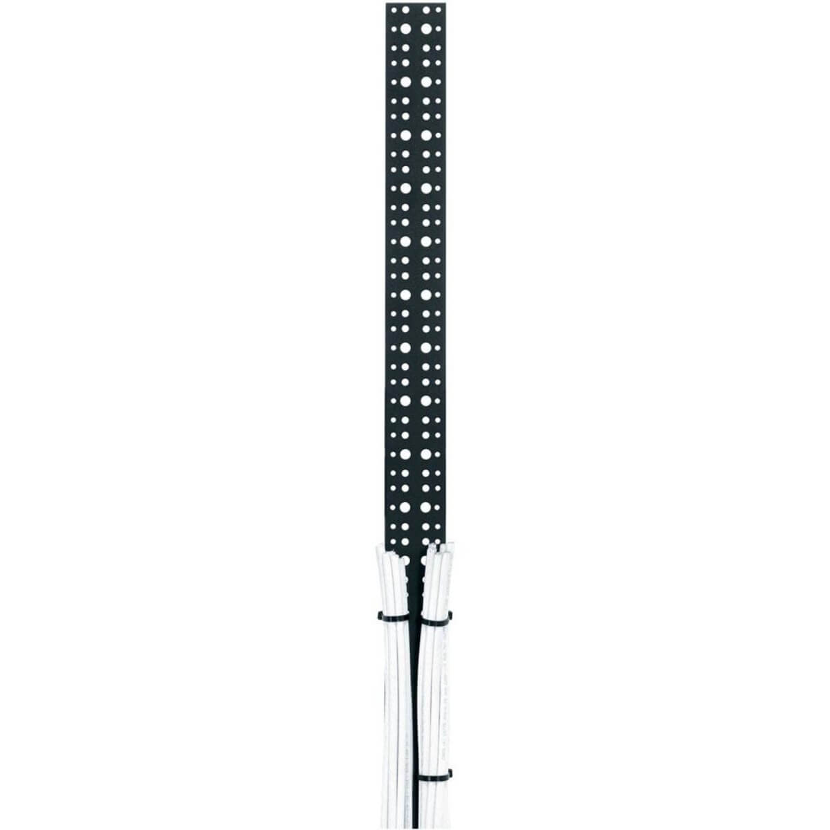Perforated steel lacer strips mount vertically to rackrail brackets and provide many locations for securing cable ties. Lacer strips can be cut down easily to smaller sizes. LACE-OWP and LACE-OP strips feature tie posts for sliding on pre-wrapped cable bundles using cable ties or up to 3/4-inch wide Hook and Loop straps. Some lacer strips also accept cage nuts or mounting of select power strips for increased versatility.