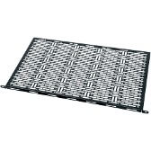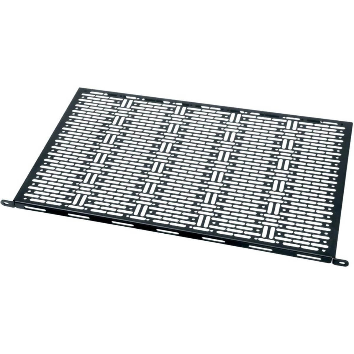 This innovative new shelf was designed to mount small items conveniently in the front or rear of a rack while providing abundant cable management and device tie down points. Pattern of holes and slots accommodates nearly any mounting hole pattern, and can also be used for wire tie or other fastening approaches. Surprisingly strong for their size, these shelves will solve many of your small item mounting challenges in any standard rack.