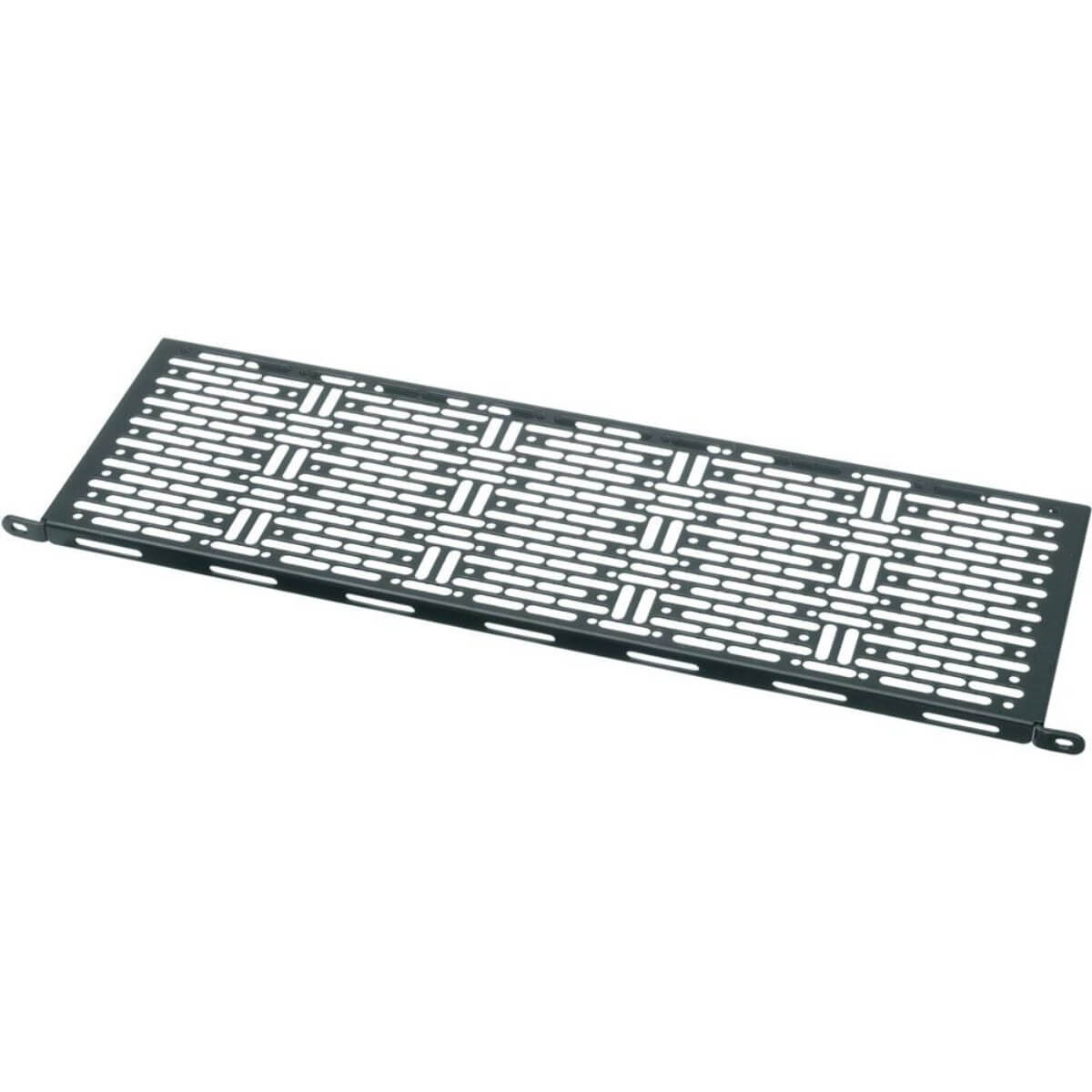 This innovative new shelf was designed to mount small items conveniently in the front or rear of a rack while providing abundant cable management and device tie down points. Pattern of holes and slots accommodates nearly any mounting hole pattern, and can also be used for wire tie or other fastening approaches. Surprisingly strong for their size, these shelves will solve many of your small item mounting challenges in any standard rack.