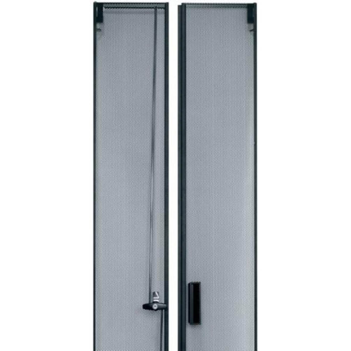 Add a vented or split rear door in selected sizes. Black textured powder coat finish. See price list for racks available less rear door (LRD). Fully vented rear doors have 64% open area. Split rear doors with 3 point latch offer 79% open area and require less floor space when accessing rear equipment connections.