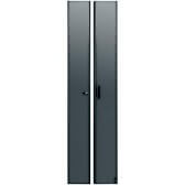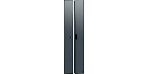 Add a vented or split rear door in selected sizes. Black textured powder coat finish. See price list for racks available less rear door (LRD). Fully vented rear doors have 64% open area. Split rear doors with 3 point latch offer 79% open area and require less floor space when accessing rear equipment connections.