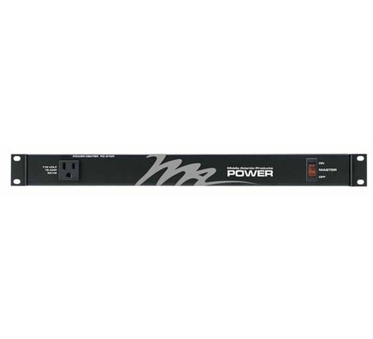 The Middle Atlantic PD-915R is a 19" Rackmount Power Strip that features 9 Outlets, 15Amp power capacity, and basic surge protection. This unit offers differential and common mode surge and spike protection as well as EMI filtering. It also contains enhanced surge protection with no surge diversion to ground, and operates on 120 volt AC/60Hz current. It includes 9' SignalSAFE 4/3 power cord with NEMA 5-15P plug, 8 circuit breaker protected rear outlets, 1 front outlet, and 15 amp circuit breaker located on the power strip’s front. It has been designed to perfectly fit into 1 rackspace and is constructed of 18-gauge phosphate pre-treated steel with a black powder coat finish.