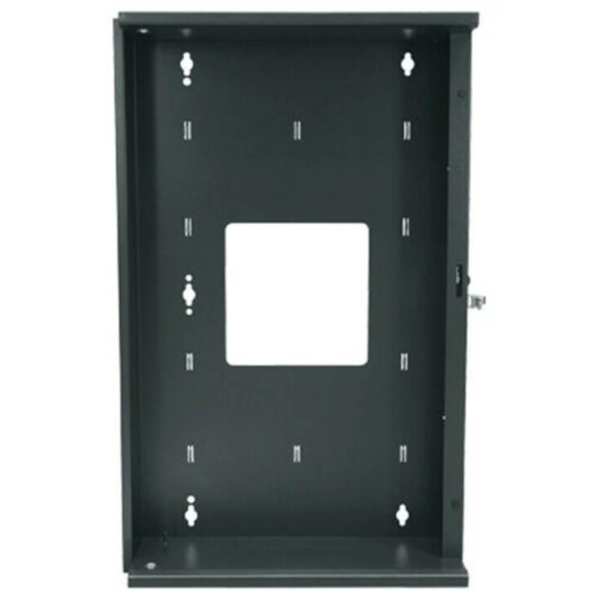Pivoting backpan enables wall mounting of Essex MMR series racks with access to rear equipment connections for service and upgrade.
