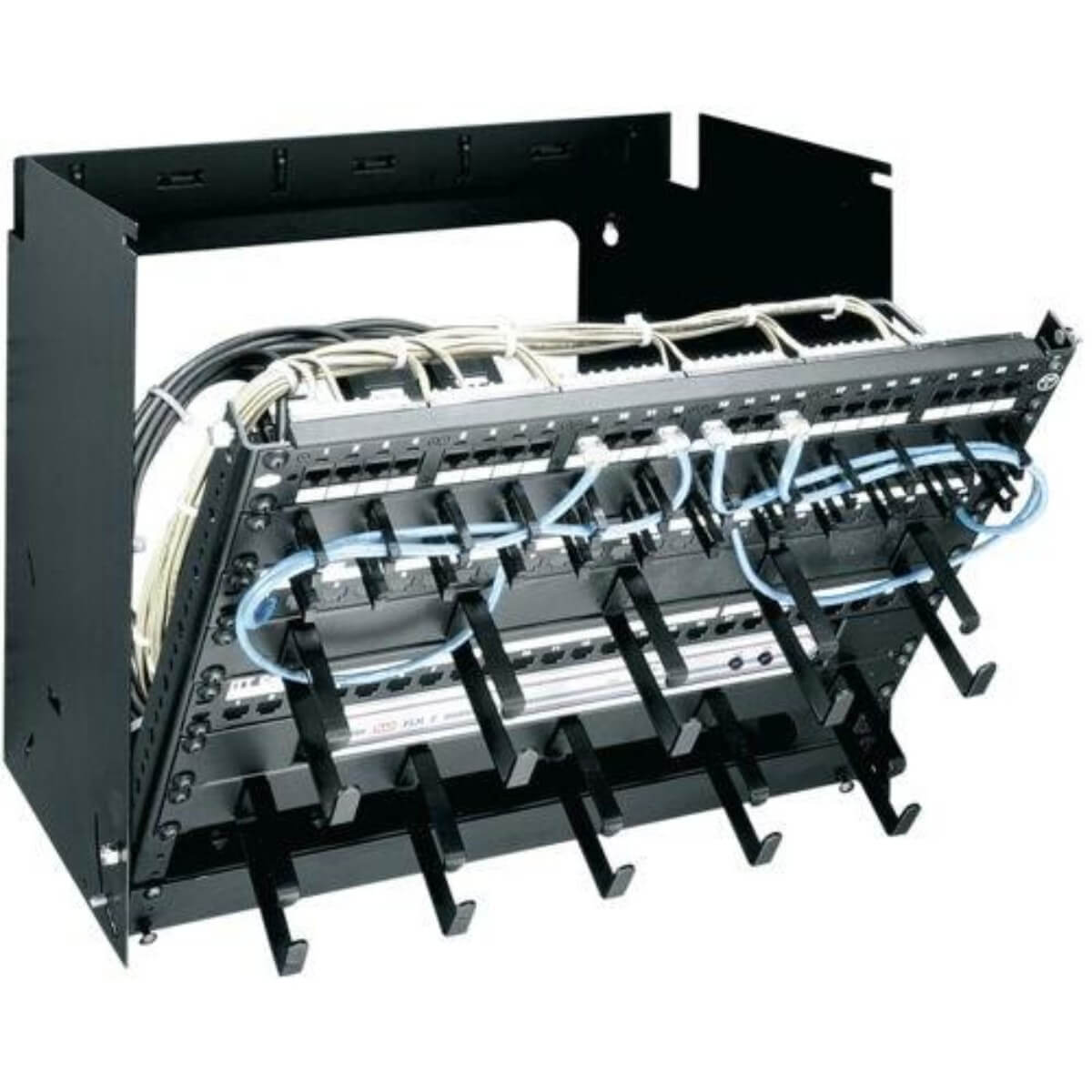 Pivoting Panel Mount enclosures provide fast, easy rear access to patch panels and network equipment to. Innovative design has a 90° positive stop to facilitate punching down while fully open. Rugged steel construction; rack screws and hook-and-loop fasteners are included. Unique design allows punching down while fully open. Abundant internal tie points for cable management. Standard 10-32 threaded rackrail. Includes hook and loop cable fasteners. Includes rack screws. Optional security covers and doors available.