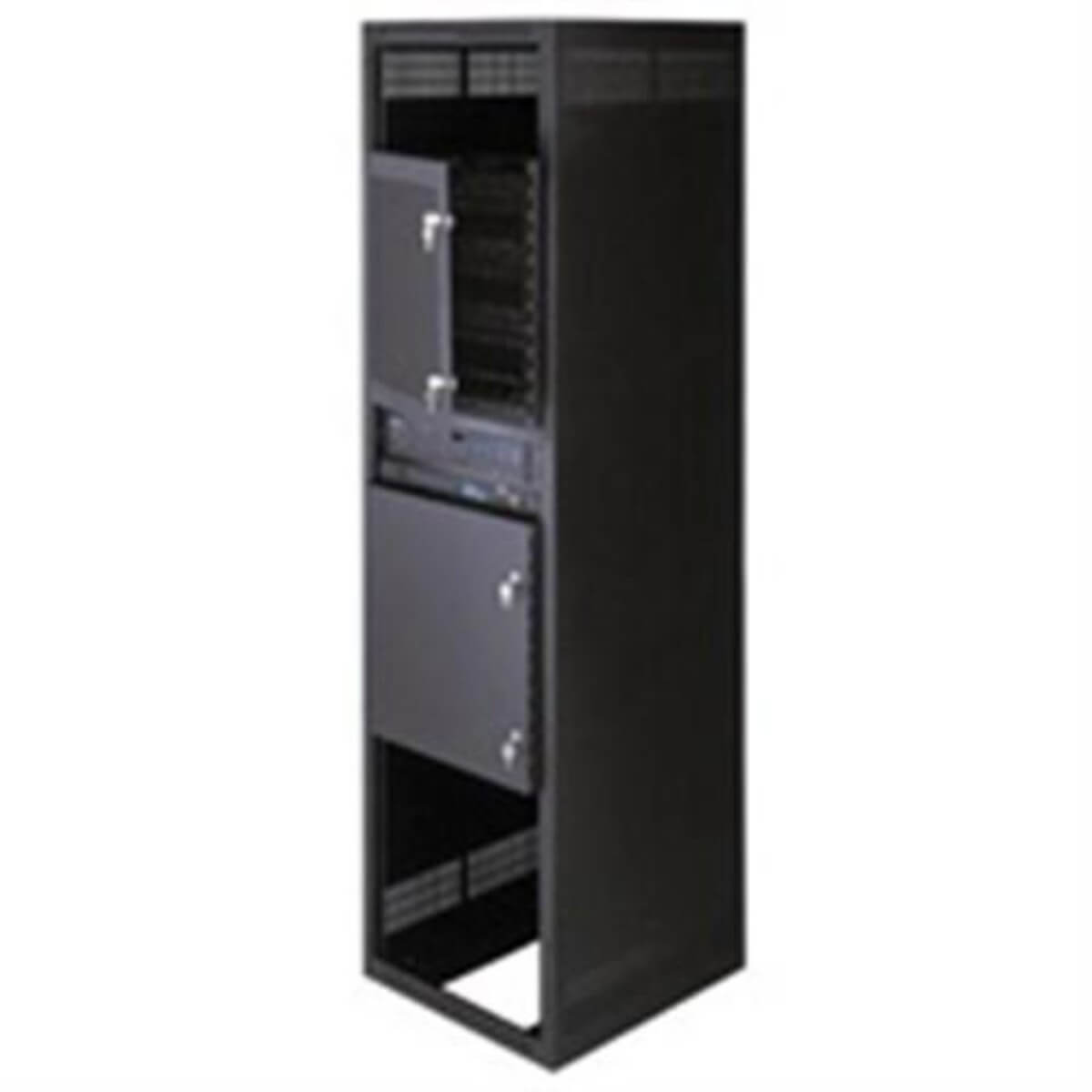 Our keylocked steel security doors allow front access to a select portion of rackmount equipment and are available in plexiglass, vented, and solid steel styles. Mount equipment which needs to be secured behind the solid door to keep unauthorized users from tampering. Keep equipment which needs to be client accessed in the open portion of the rack. Works as a full door on our RK/BRK series racks as well.