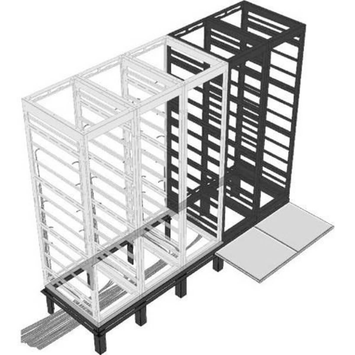 Timesaving and practical, the Raised Floor Enclosure System consists of 2-1/2-inch high riser bases, which provide the ability to perform field rough-in procedures prior to the arrival of the racks and enclosures. Also handy as a lower cable chase for passing cables between racks in multi-bay applications, riser bases feature 1/8-inch thick fully welded construction and an attractive black powder coat finish. Riser bases feature knockouts for passing cables between joined riser bases. Riser feet bring riser bases to a 12-inch height for use with raised floors. Raised floor support angles support floor tiles when used with riser bases and feet. Custom width, depth and height RIB Series riser bases are also available,