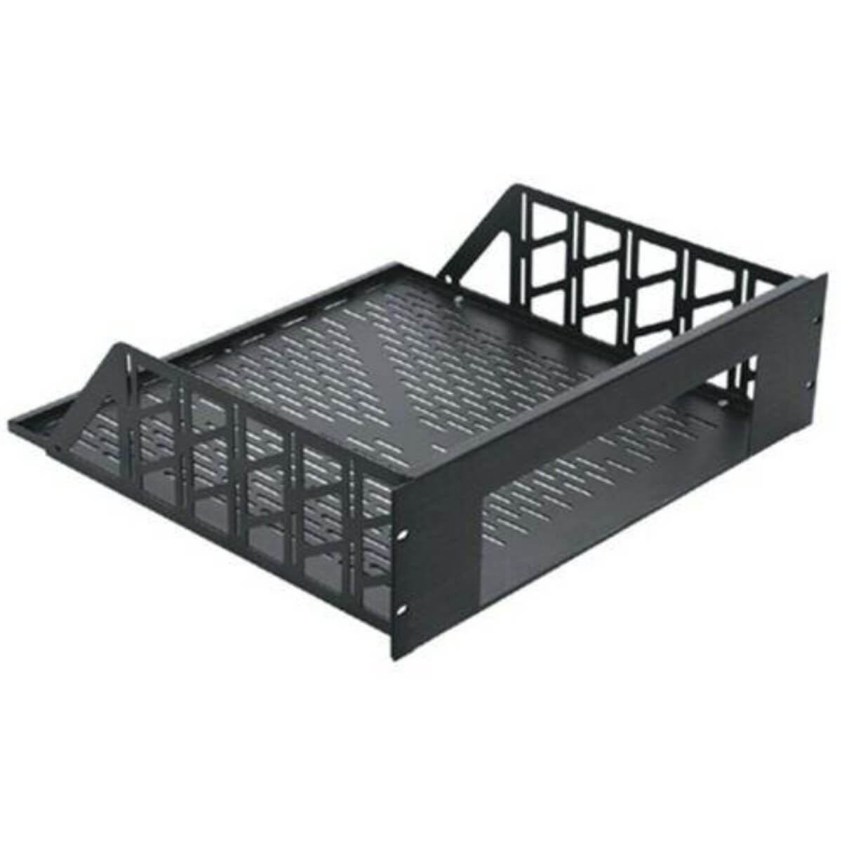 With the innovative RSH custom rackmounts, virtually any component can be installed in a standard 19" enclosure without modification. Custom cut to provide a perfect opening for the face of the component that is being mounted, each RSH unit provides a neatly-trimmed installation with a perfect fit and no gaps. With accurate details on over 9,500 components in our measured unit database, chances are we have the component needed on file. Unit assembles easily in minutes and includes rear brackets to prevent the mounted component from sliding back. Fully ventilated ears and bottom promote cooling. Depending on the needs of the installation, the units can be ordered with a black textured finish (model RSH4S) or a black brushed and anodized finish (model RSH4A). Bottom depths are automatically provided in 11-1/2" , 14" , 15-1/2" , 17-1/2" , or 20-1/2" styles. Custom rackmounts will accept any component up to 17-3/4" wide. Individual custom faces (less rack ears and shelf bottom) are also available in a black textured finish (model SFACE) or a black brushed and anodized finish (model AFACE). LCD rackmounts also available to mount most LCD monitors with up to a 17" screen size or with a maximum width of 17-3/8". NOTE: custom rackshelf height is specified at the factory based on physical restrictions. Visit middleatlantic.com to find heights on all measured components, or design the system in RackTools® or Visio® Blocks, which are both updated regularly with the latest components. Custom cut to provide a perfect opening in the face. Comes with an appropriate-sized vented rackshelf.