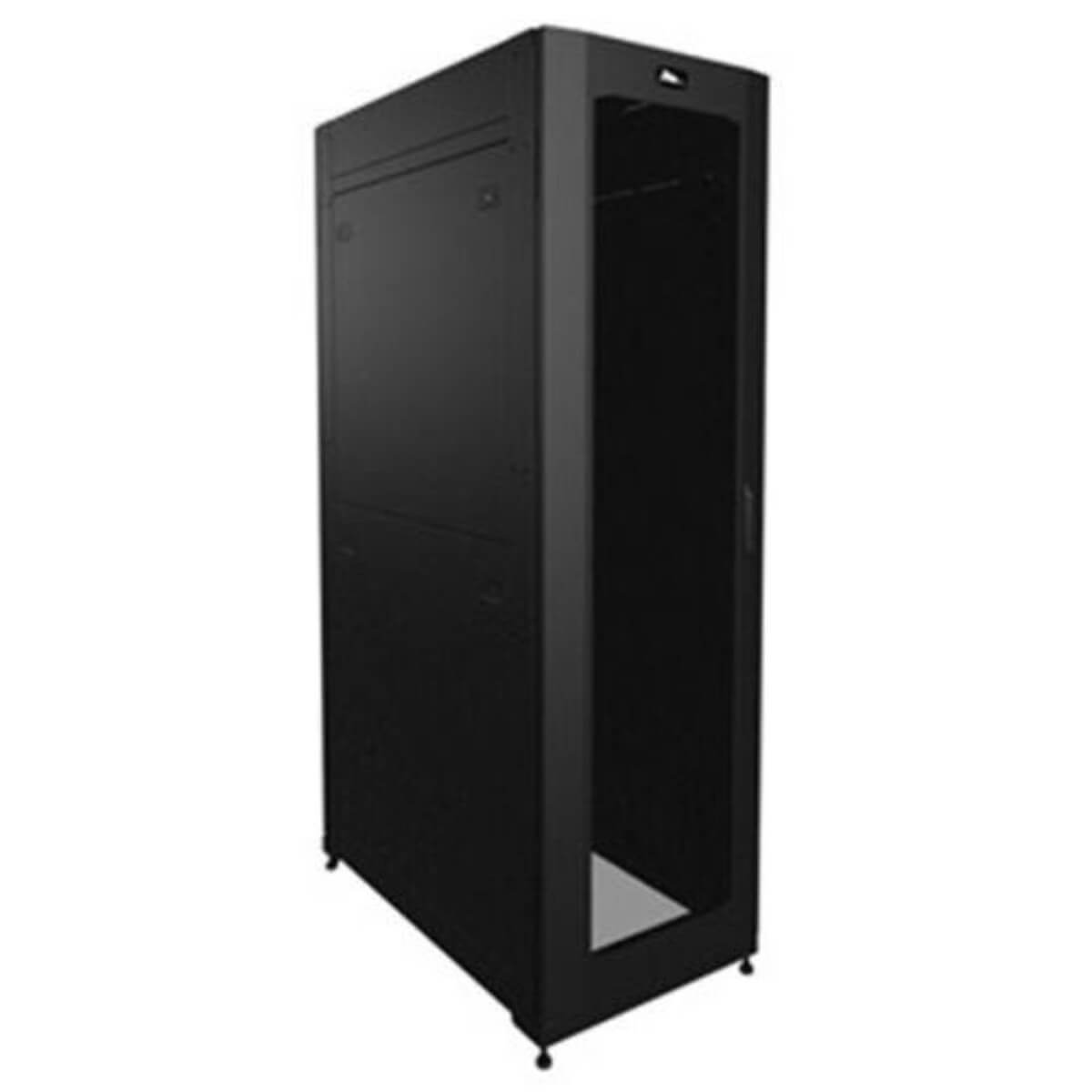 The SNE Series Digital is configured for digital (IP based) security systems consisting of high-density cabling, network equipment, and servers. Optional Tool-Free Lever Lock system accommodates small devices including encoders, power supplies, and Access Control Systems. Fully configured Security Network Enclosure with passive ventilation for data centers o 70% open area vented front door o Pair of split flush mount locking side panels o 2 pair of adjustable cage-nut rackrail (including 6mm hardware) o Lever Lock compatible (accepts all Lever Lock vertical 21" accessories) o 24" width o 48" overall depth o 42 rackspace o 100 6mm cage-nuts/rack screws included SNE Series Digital with passive cooling (front to rear) 70% open area split rear door Solid top with brush cable pass-through Lever Lock compatible (accepts all 21" vertical accessories). Configured for passive front-to-back cooling. UTL/ETL listed and seismic certified. Includes 70% open front door and 70% open area split rear door. Includes solid top with brush cable pass-through. Includes 2 pair of adjustable cage-nut rackrail. Includes 100 6mm cage nuts and rack screws. Includes 4 leveling feet. Includes 4 casters.