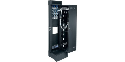 - Flexible cable entry access at the top, bottom and sides of the rack with additional knockouts for electrical box and fans