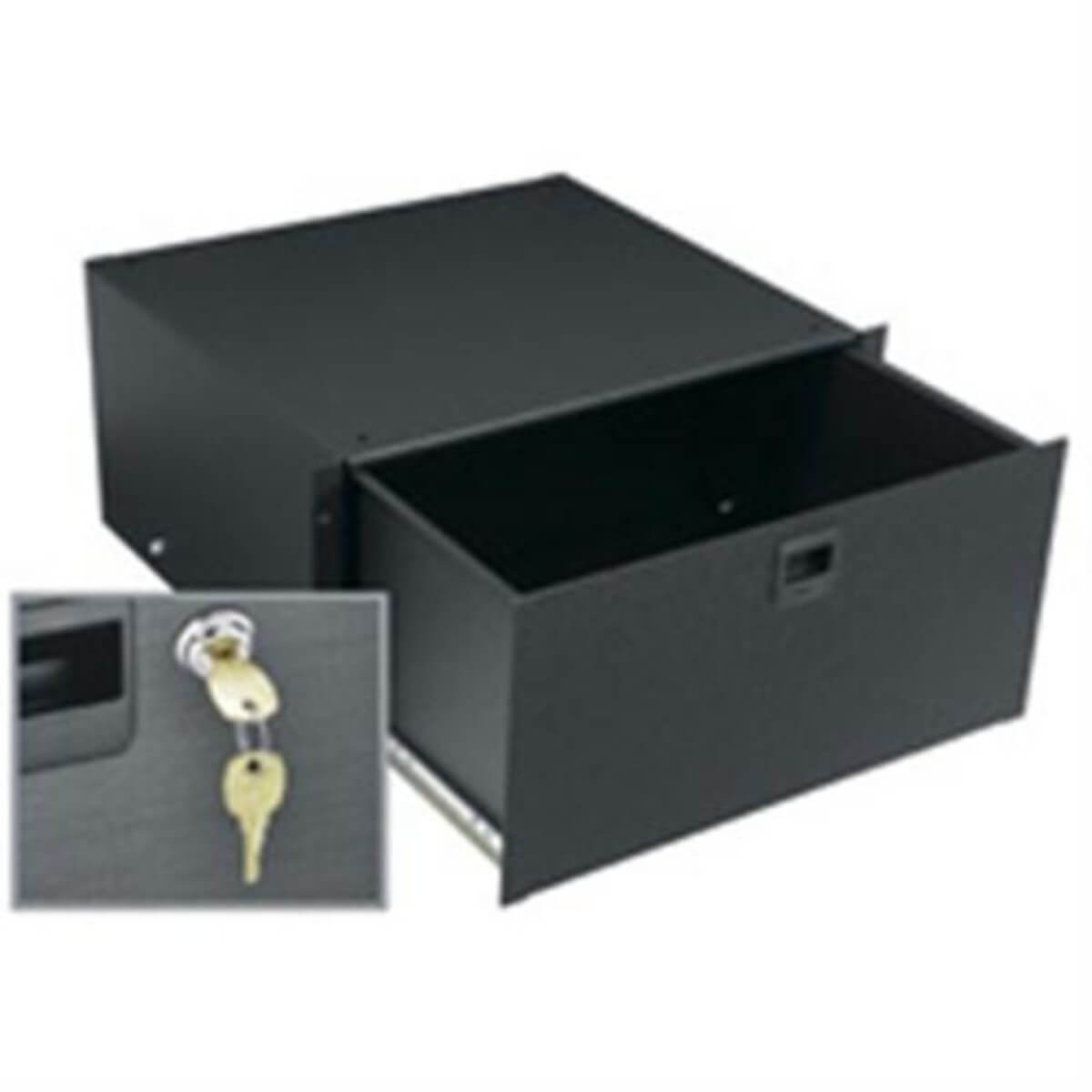 Fully enclosed top with inside dimensions measuring 15-7/8" wide by 14-1/2" deep, the TD Series drawers feature spring-loaded latches and rugged, straight-forward construction. Installed keylock option available. 2, 3 and 4 space models include drawer mat and rear cable grommet at no extra charge!