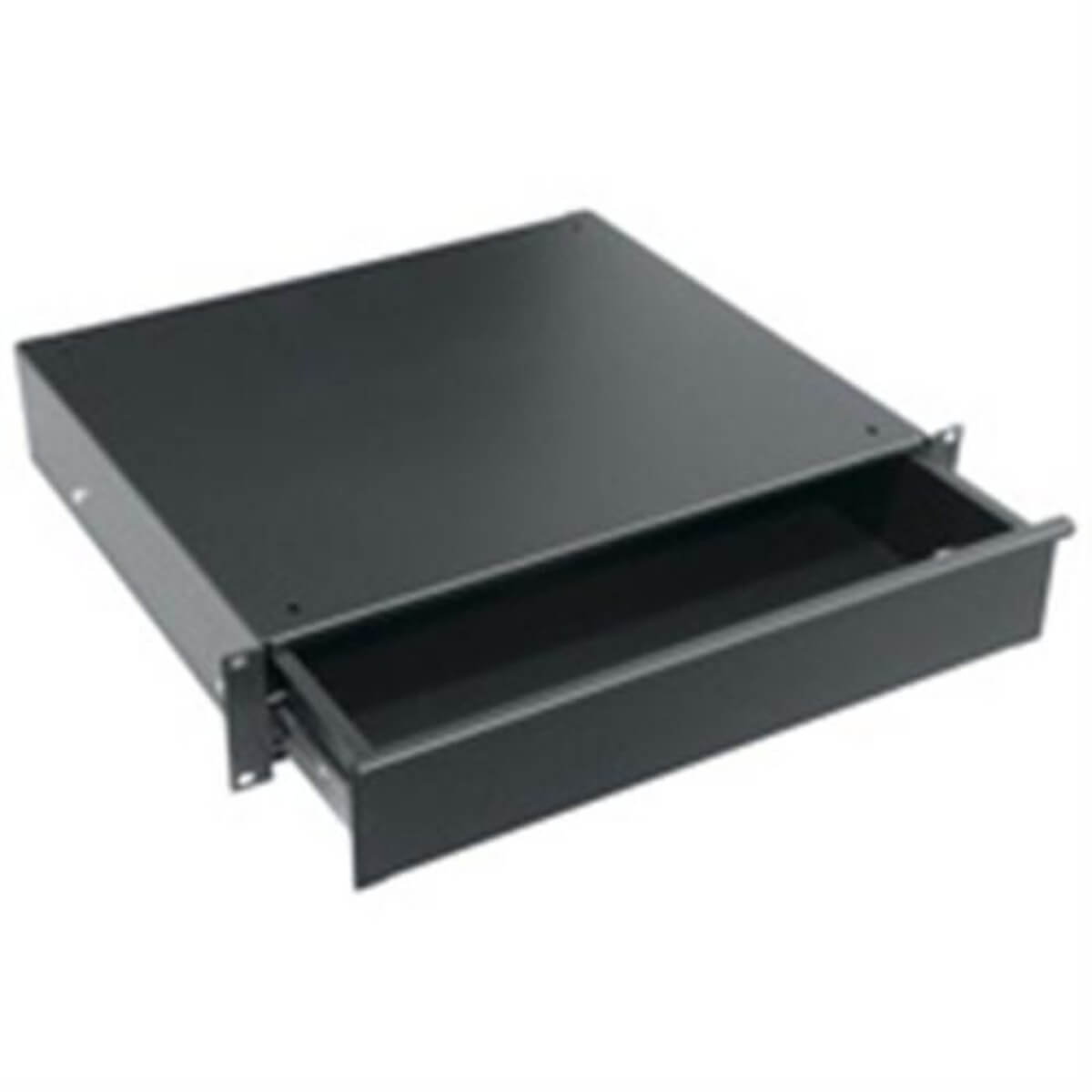 The UD Series rack drawer offer an economical rack storage solution. Full extension ball bearing slides extend a full 14" to reveal inside dimensions measuring 15-7/8" wide by 14-1/2" deep. Each model comes with a face formed drawer pull. User-installed latch and keylock are available options. Black powder coat finish.