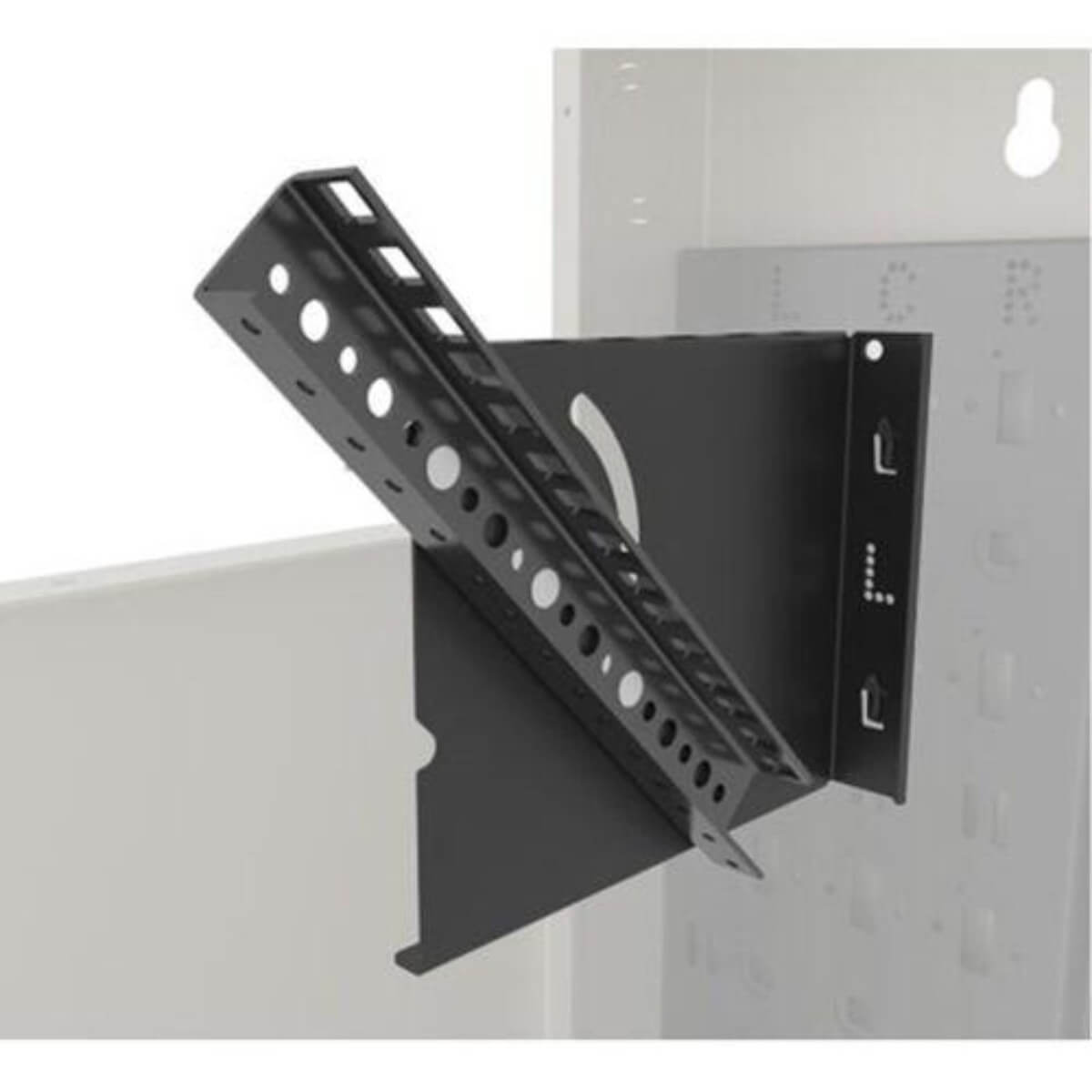 Vertical Wall Mount 2 Space (3.5") Pivoting Rail and Mounting Bracket Kit. Compatible with 10" Deep Backpan with Door Option and 16" Deep Backpan with Door Option. Rackrail options include both 10-32 threaded and cage nut mounting options.