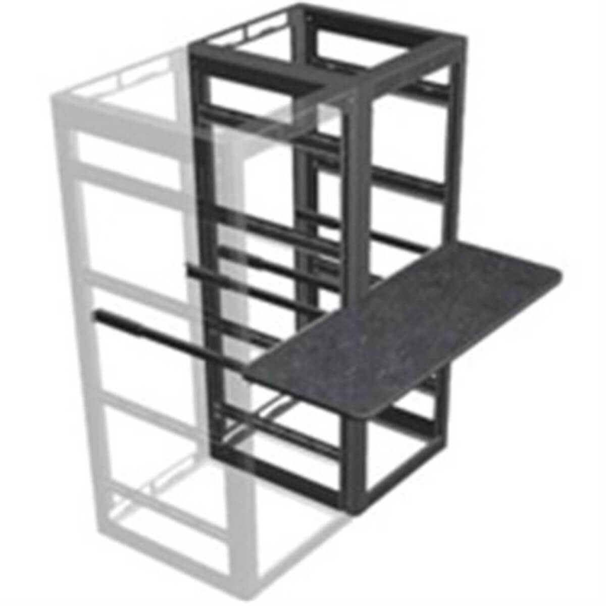 Designed to provide a secure work surface, our new writing shelves are available for our WRK or MRK series enclosures. Offered in two, three, and four-bay sizes to span multiple ganged racks, these shelves feature an attractive 1-inch thick graphite-marbled laminate surface with a durable black T-mold edging. The supplied mounting system consists of sturdy steel-tubes that attach at both front and rear rackrail in each rack bay and extend beneath each writing shelf providing support. Additionally, each writing shelf includes cable pass-through holes with grommets providing effective cable management for laptops, computer keyboards, etc. Each writing shelf precludes the use of two front and two rear rackspaces. Custom sized writing shelves available-