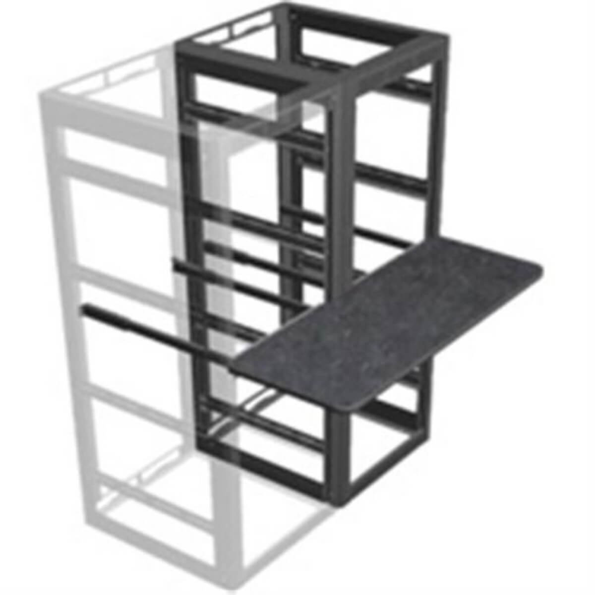 Designed to provide a secure work surface, our new writing shelves are available for our WRK or MRK series enclosures. Offered in two, three, and four-bay sizes to span multiple ganged racks, these shelves feature an attractive 1-inch thick graphite-marbled laminate surface with a durable black T-mold edging. The supplied mounting system consists of sturdy steel-tubes that attach at both front and rear rackrail in each rack bay and extend beneath each writing shelf providing support. Additionally, each writing shelf includes cable pass-through holes with grommets providing effective cable management for laptops, computer keyboards, etc. Each writing shelf precludes the use of two front and two rear rackspaces. Custom sized writing shelves available-