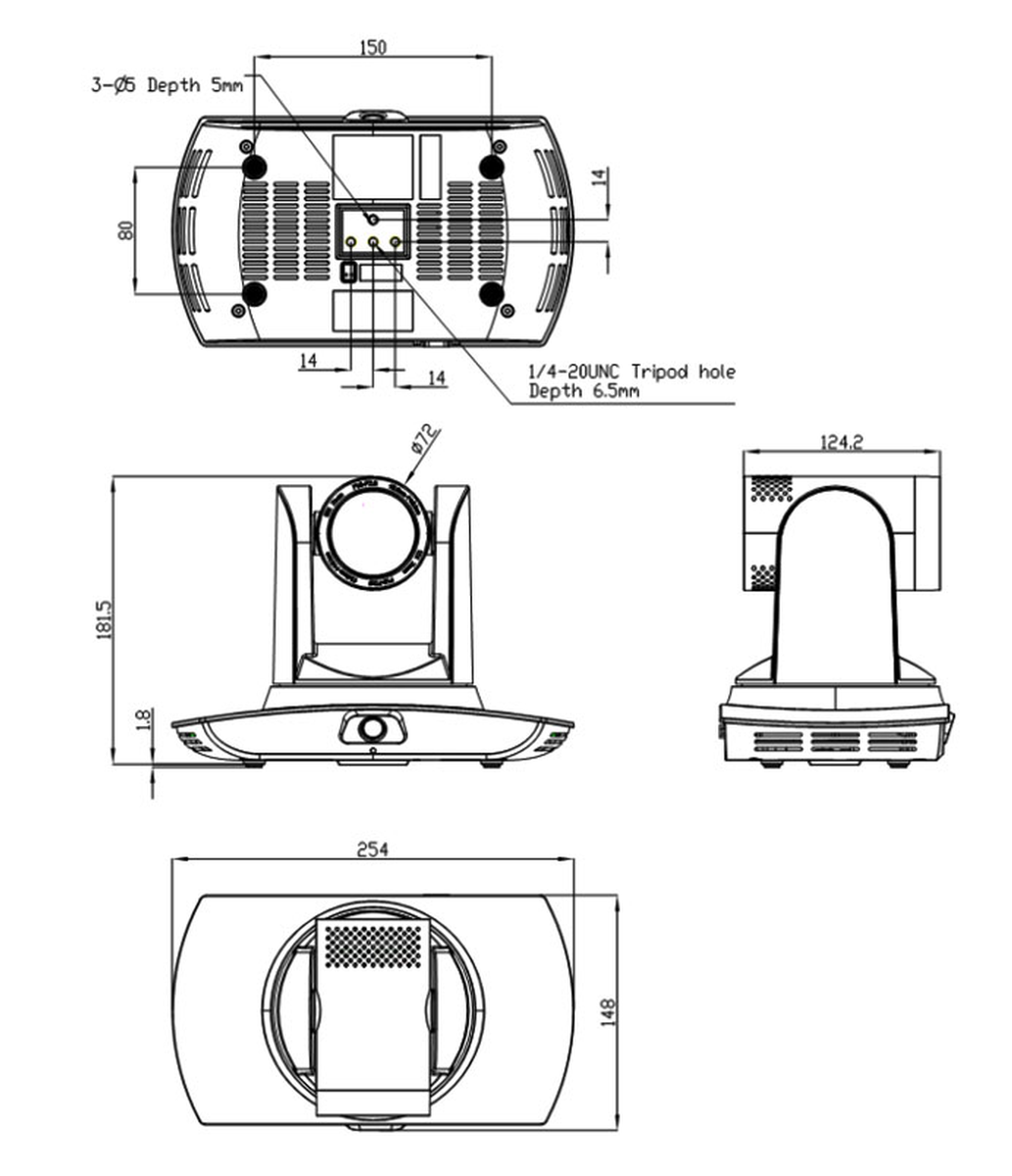 - Accessory: 12V/2.5A power supply adapter, RS232 control cable, Remote Controller, User Manual, Warranty Card, brackets (optional)