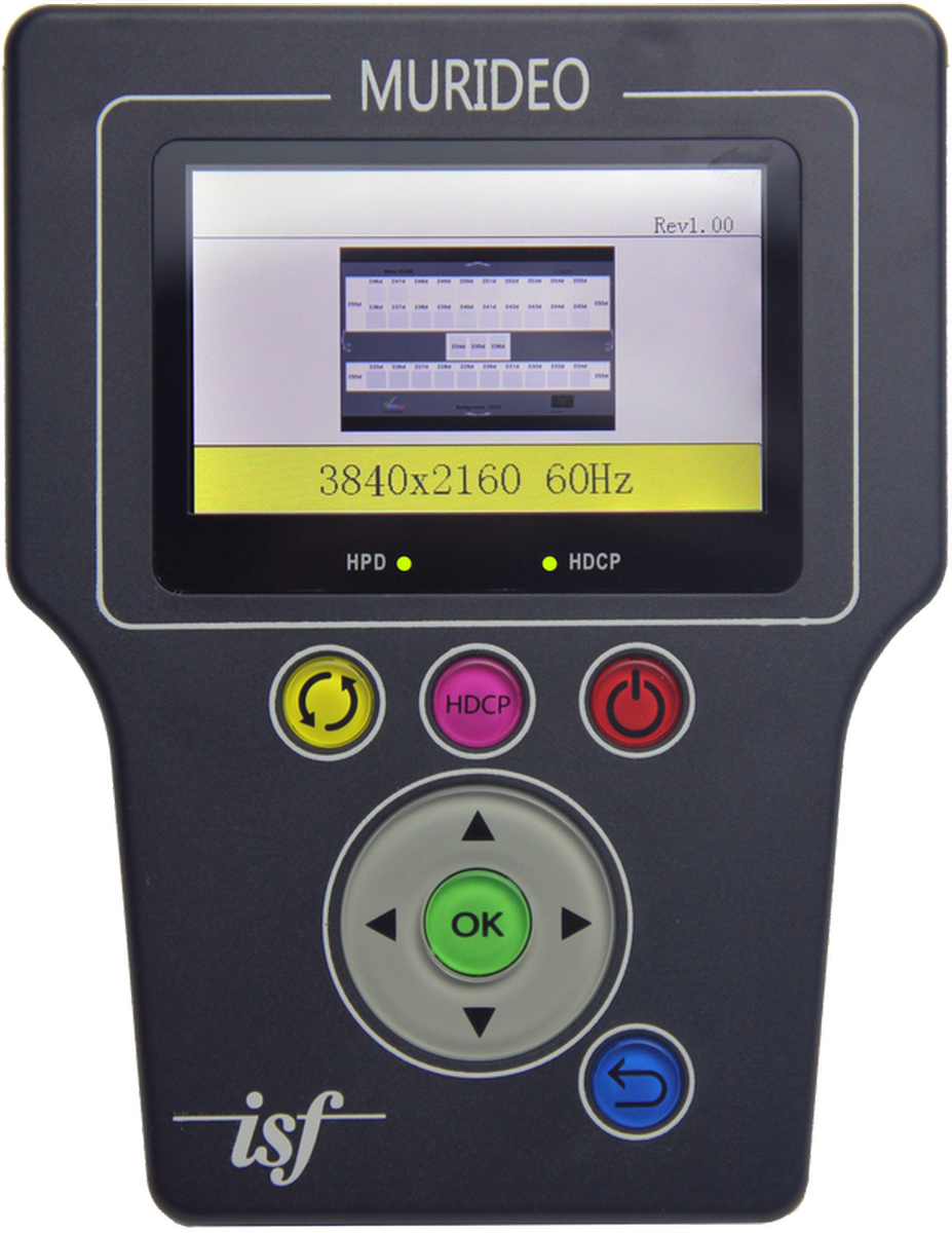 The 3" color display gives quick and easy to see readouts, while the large buttons on the front provide intuitive navigation.  The screen shows the patterns you have selected, output resolution, test pattern, and for checking HDMI and HDCP version compatibility.  The unit can be controlled via RS-232, USB, and comes with free PC control software for advanced options.  You can use the tester by itself or with calibration software such as Calman for advanced features.
