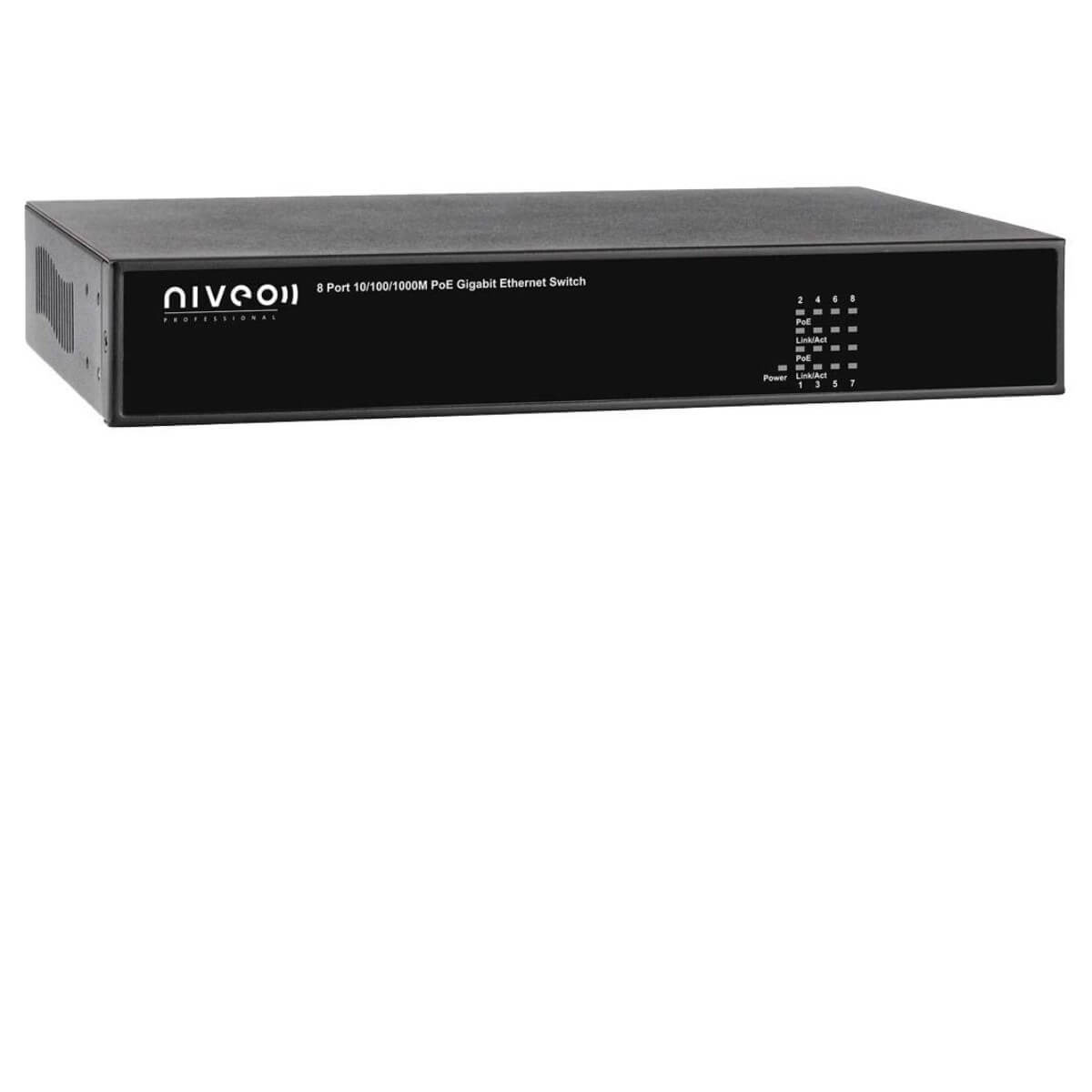 Niveo 8-port Gigabit high power PoE+ Rear Facing Switch
