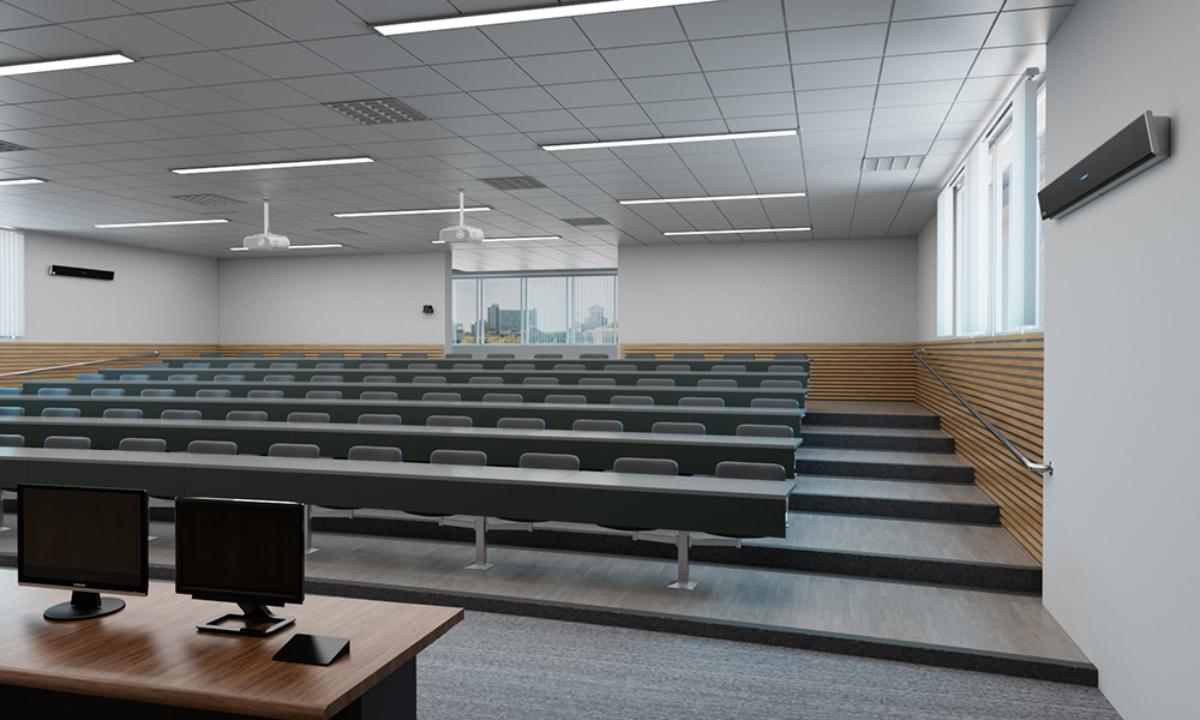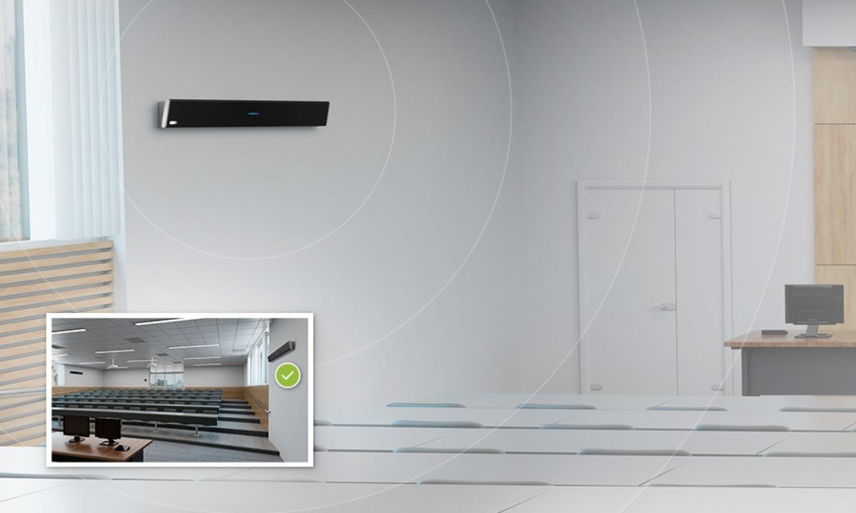Installing the HDL410 is an easy project that takes about 60 minutes. You hang each unit on the wall with two screws, run one cable from each unit to the connect module and another to a computer or other internet-connected device. Compare that to traditional systems for large spaces that may include choosing and installing multiple mics, speakers, cables and a DSP – a process that can take days and require outside technicians.
