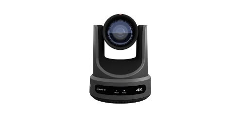 PTZOptics Link 4K, a third generation PTZ camera, featuring 12X Optical Zoom, 4K Resolution at 60fps and a 72.5 HFOV. Supports simultaneous IP Video (DANTE AV-H, SRT, RTMPS, RTSP), USB2.0 and 3G-SDI or HDMI2.0 as outputs with Auto-Tracking capabilities. PoE Power or Included Universal Power Supply | Gray