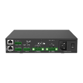 The DIO-AMP150 is a two-channel class D amplifier featuring Dante 2CH digital inputs and outputs, and balanced or unbalanced line level analog inputs and outputs. It can be used for powering low impedance speaker systems with a maximum power of 2 x 75 Watts, while bridging to a constant voltage (100V and 70V) is possible with a maximum output power of 150 Watts.