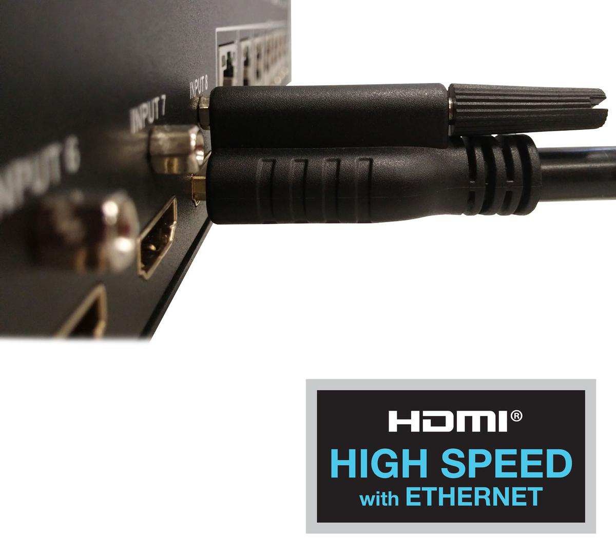 Featuring the PureLink PLH-050 a 16.5' 4K HDMI 2.0b Locking Screw Cable with Ethernet and TotalWire Technology. Designed for the extreme home user or high-end integrators wanting the best in 4K audio and video quality in their AV and Multimedia Entertainment Systems. PureLink's PLH HDMI series cables feature a completely unique secure locking design to prevent cable strain and loose connections, eliminating the need for added port savers or brackets. Perfect for the most demanding installation environments, these cables support the very best in cable technology supporting HDCP 2.2 and HDMI 2.0b technology and true Ultra HD/4K60 (4:4:4) resolutions. With a full 18Gbps of bandwidth the PLH-050 offers added security and unmatched signal quality in todays high performance cable market. This cable is the perfect companion when matched with PureLink's HDTools line of integrated 4K matrix switchers.