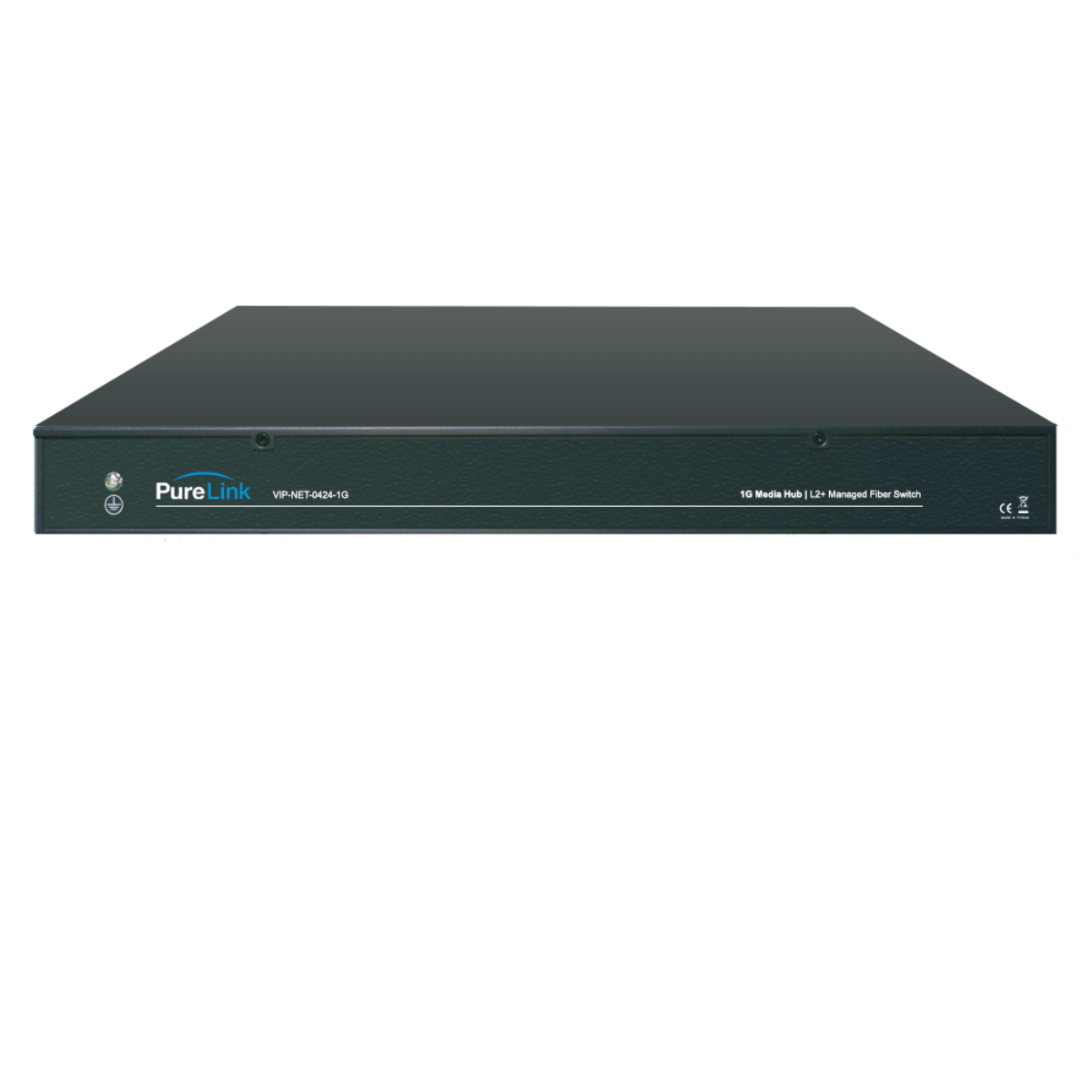 The VIP-NET-0424-1G Media Hub is a next-generation L2+ managed fiber switch purposed-designed for AV over IP applications. The VIP-NET-0424-1G offers a full suite of L2 features including advanced L3 functions such as Static Route that deliver better performance via fiber and copper connections, as well as lower total cost of ownership in Enterprise networks.