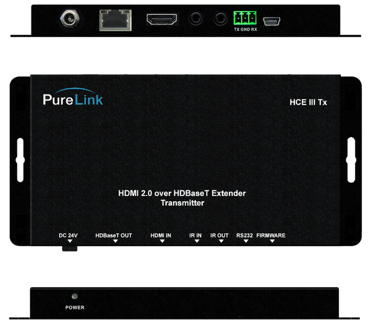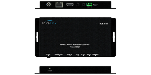 The PureLink HCE III Tx HDBaseT to HDMI 2.0 with IR, RS-232 and Bi-directional PoE Transmitter. This premium Ultra HD range extension transmitter unit was designed to transmit HDMI signals up to 130' at 4K/60Hz 4:4:4 resolutions. It offers full HDMI 2.0 compliance supporting HDR (High Dynamic Range), data rates up to 18Gbps with HDCP 2.2 compliance. In addition by using PureLinks Precise codec, a light compression technology, the HCE III Tx can transmit (to a compatible receiver) Ultra HD/4K, multi-channel audio, and HDR 10-bit support content over a single CAT cable. Further signals lengths can be sent up to 230' with a reduced resolution down to 1080p with embedded multi-channel audio, CEC pass-through, bi-directional RS-232 and IR control, and PoE, all with zero loss and zero noise. This transmitter will also support Dolby TrueHD, Dolby Digital Plus and DTS-HD Master Audio plus LCPM (up to 192 kHz) audio formats. Being designed in a new low profile "slim box" enclosure makes the HCE III Rx an ideal solution for limited space installation environments, such as behind flat panel displays, and video walls.