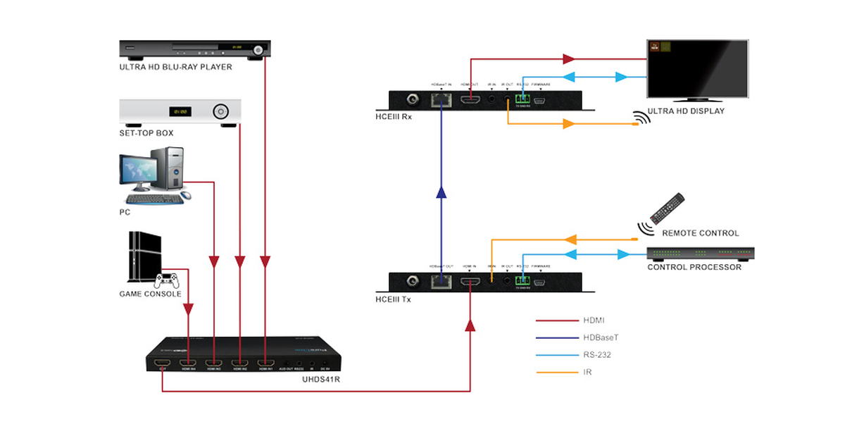 - Inputs: HDMI, IR, RS-232 (Phoenix), Mini-USB (firmware upgrades)
