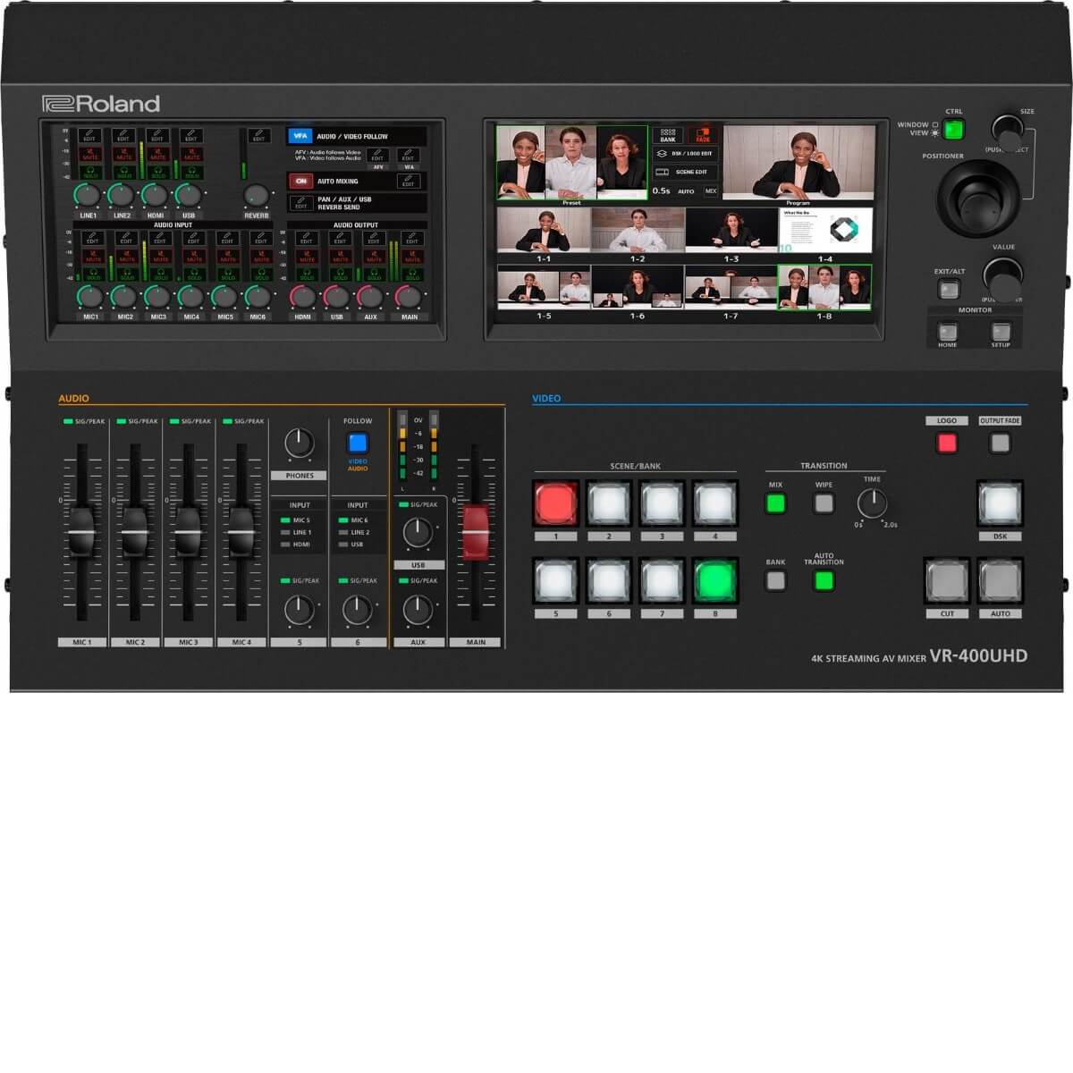 The VR-400UHD is a powerful and intuitive solution for managing complex production tasks during in-person and livestreaming events. Side-by-side touchscreens provide fast, direct control of your workflow in the heat of the moment, letting you monitor live video thumbnails, switch composite video scenes, access audio mixing and video routing functions, and much more. Versatile onboard AV connectivity provides the I/O you need to manage everyday production needs with one compact unit. And with full 4K HDMI and USB streaming support, you're always ready to deliver the highest video quality for your clients and audience.