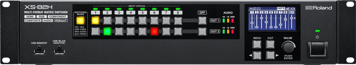 The Roland Pro A/V XS-82H is a multi-format 8x2 matrix switcher with a long list of of highly sought after features. The most desired feature is the free XS-80H iPad app, this lets you take control of your XS switcher remotely. You can switch video and audio inputs, volume levels, and change presets, names, icons, and much more. The XS-80H Remote app is a users dream without the high cost of programming and purchasing a touch panel, the app can be downloaded here. USB WLAN adapter required and purchased separately.