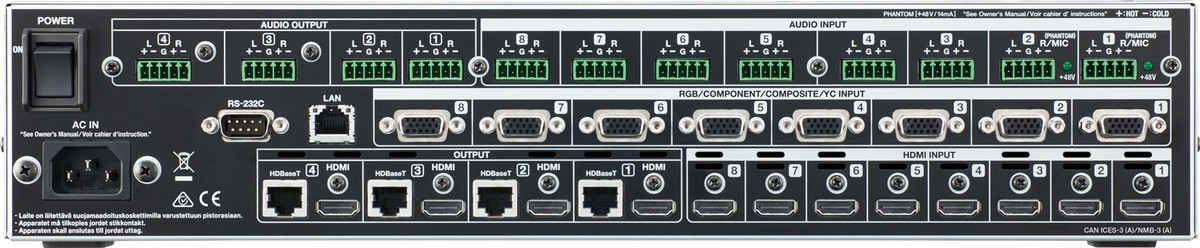 - 8x4 multi-format matrix switcher