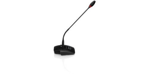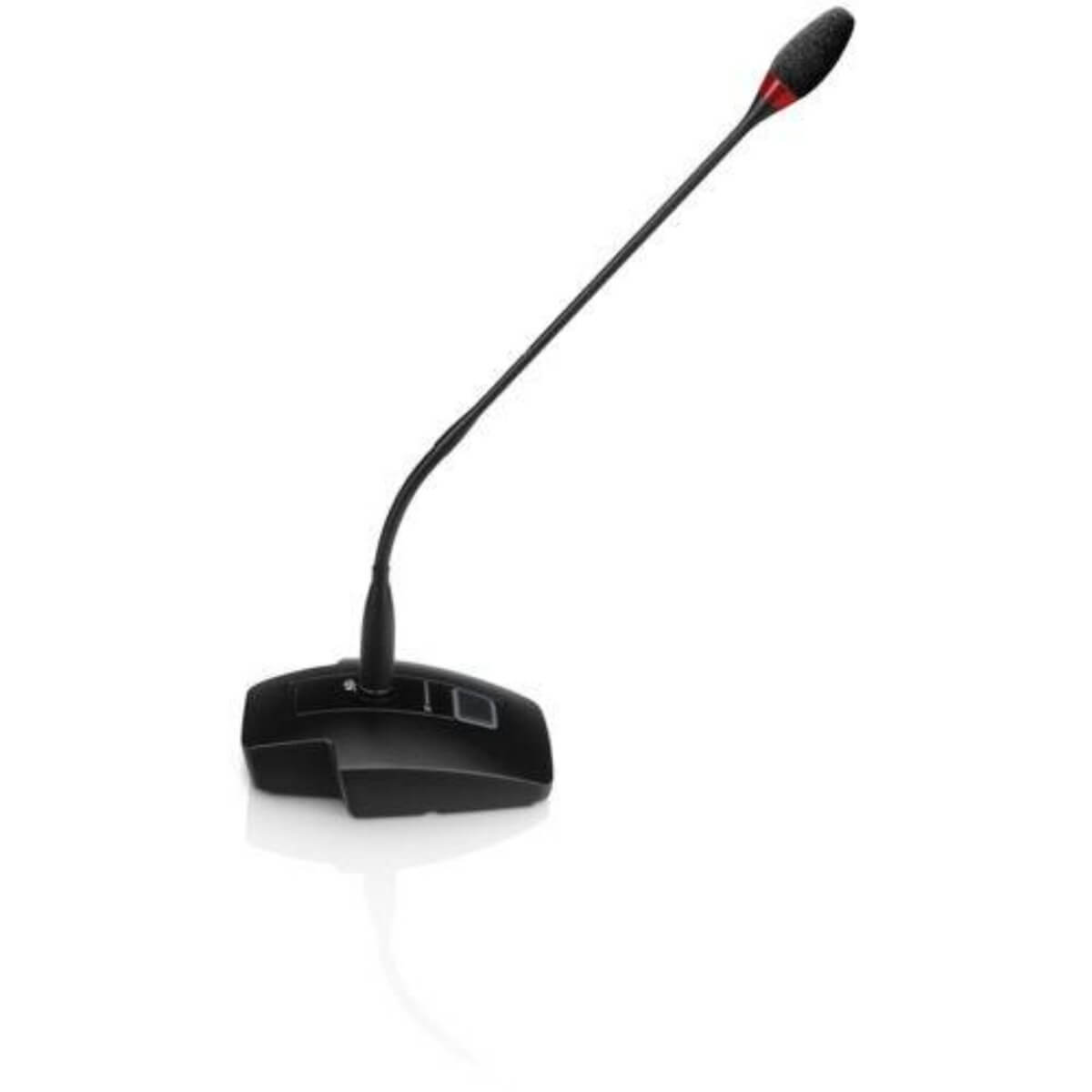 The MEG 14-40-L features a made in Germany quality gooseneck microphone on an attractive price. A lightring indicates the spokesperson that is allowed to take the floor. It features a Sennheiser KE 10 microphone capsule with cardioid directivity for universal miking. The flexible element of the streamlined 40 cm gooseneck ensures precise alignment of the microphone. A XLR 5M connector delivers power for the red LED ring and connects the microphone signal.