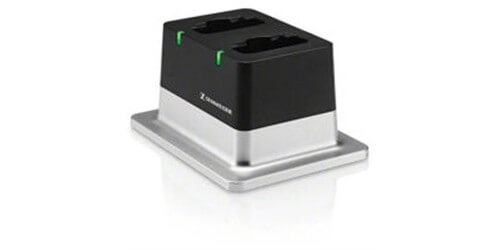 The CHG 2 charger makes battery management really easy. The mobile transmitters, while not in use, are charged in the two charging bays. Thus, the devices are always ready-to-use when needed. The bi-color LED provides the status (charging or fully charged). For seamless installation, the external power supply provides the necessary flexibility.