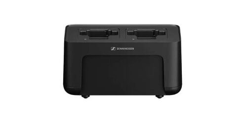 The Sennheiser CHG 70N + PSU KIT is a network-enabled charger with power supply for the EW-DX Evolution Wireless Digital Series. It simultaneously charges up to two handheld and/or bodypack transmitters from the EW-DX series. A colored LED on each charging bay indicates charge status. The charging time for a full charge is approximately 3.5 hours.