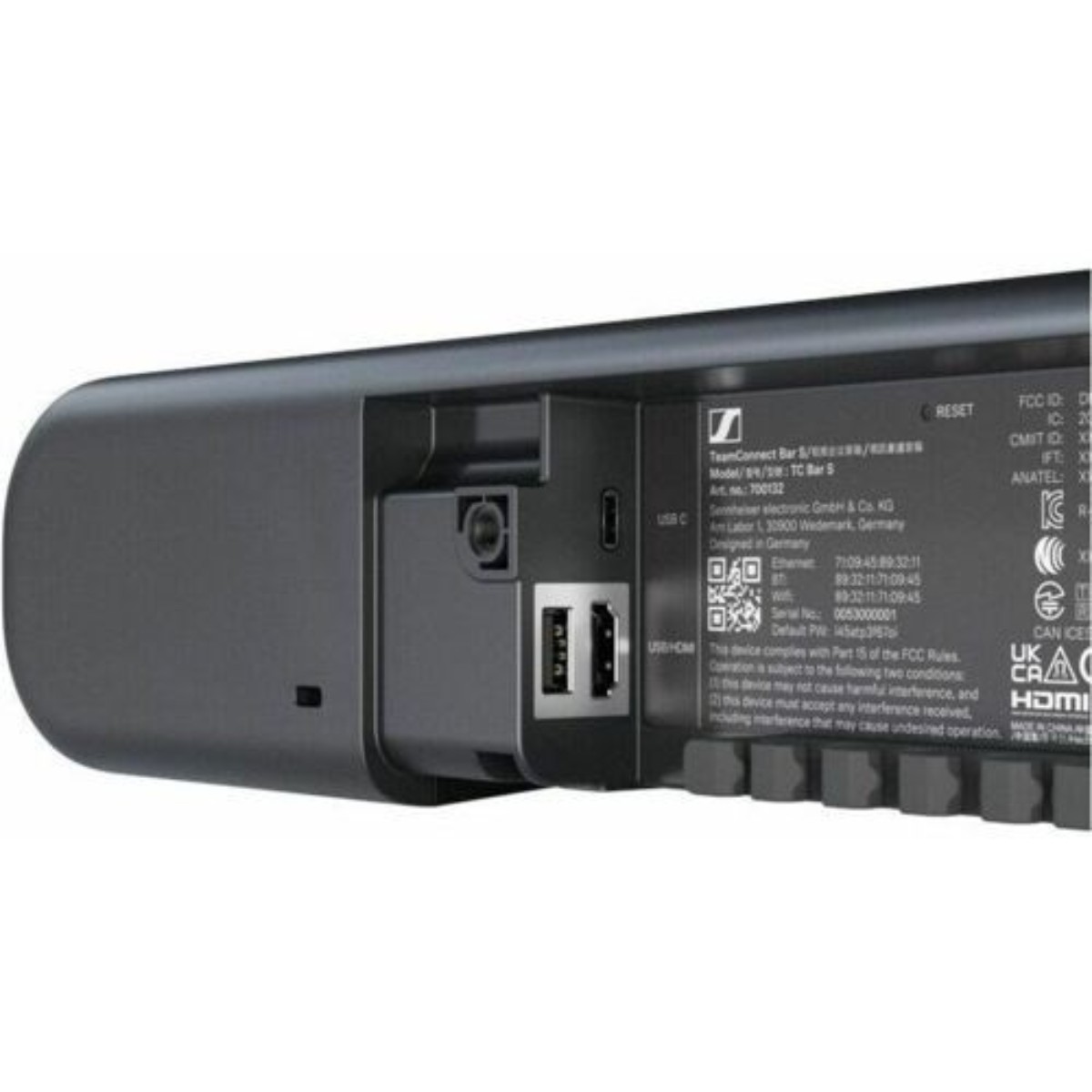 The TeamConnect Bar S is the most flexible all-in-one device for small meeting rooms and collaboration spaces. The TC Bar S features 4 microphones and 2 speakers to deliver Trusted Sennheiser Audio Quality to every meeting. The TC Bar S is a true problem solver with benefits like easy setup, brand agnostic integration, easy management & control, high video quality, security and sustainability.
