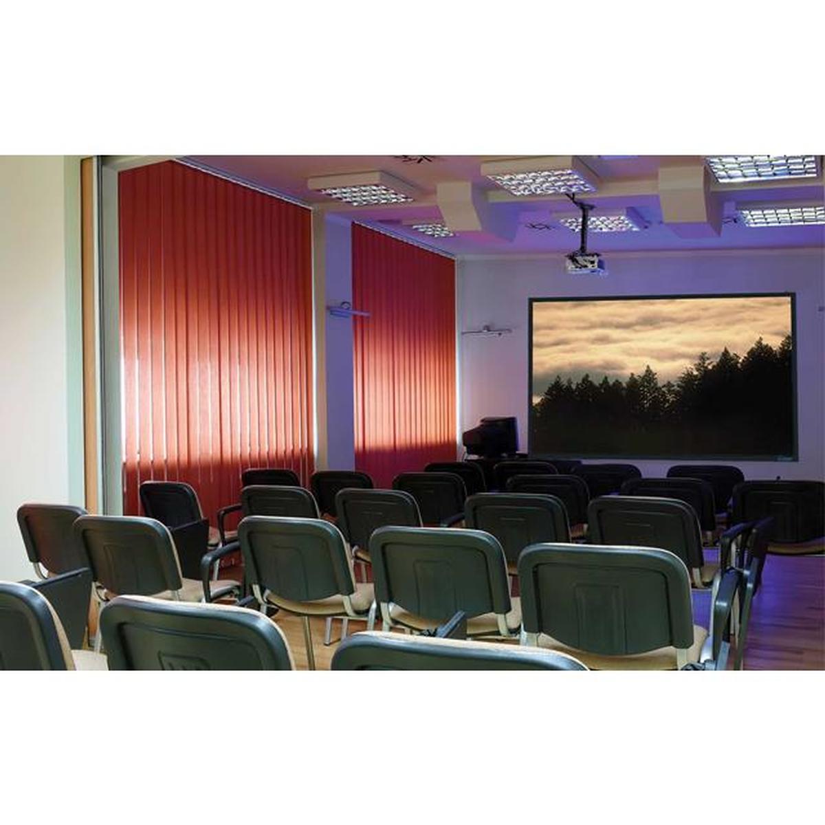 This environment-friendly projection screen is GREENGUARD certified and is made of materials that have low chemical emissions. Equally it is mildew resistant, washable, and flame retardant, with a consistently uniform material, the screen emulates an extremely smooth surface and is amazingly durable. This fixed frame screen comes with a wall bracket with built-in levels for accurate wall positioning, and has built-in magnets to align the frame with the wall studs on the wall bracket. Making this a perfect solution for use in Museums, Galleries, Home Theater type applications, as well as in high-end business/conference rooms, classrooms, and college lecture halls.