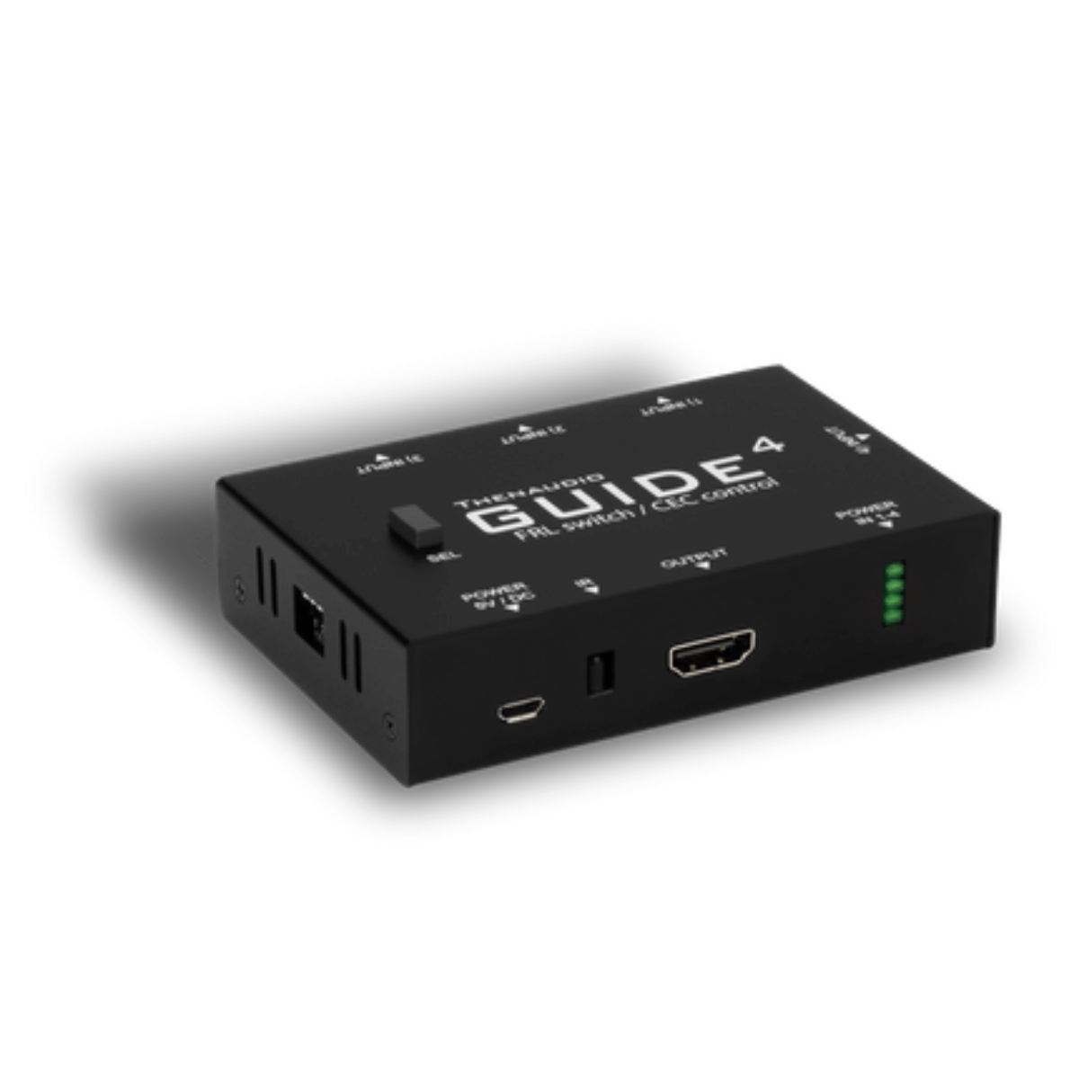 The first HDMI 2.1 Televisions and Projectors on the market may only have had a single HDMI input capable of over 18 Gbps HDMI performance. THENAUDIOs 4-input/1-output GUIDE-4 smartly solves this dilemma for NextGen HDMI signals up to 8K/60 fps, FRL 6, and 48 Gbps. Media consoles such as PlayStation 5, Xbox Series X, a dedicated gaming PC, and even an outboard ATSC 3.0 tuner present connectivity issues for under-equipped video displays.