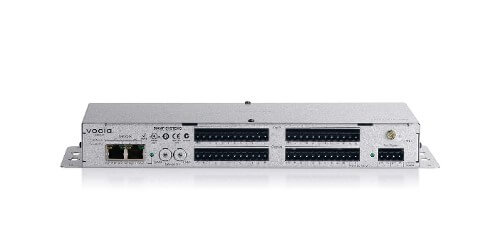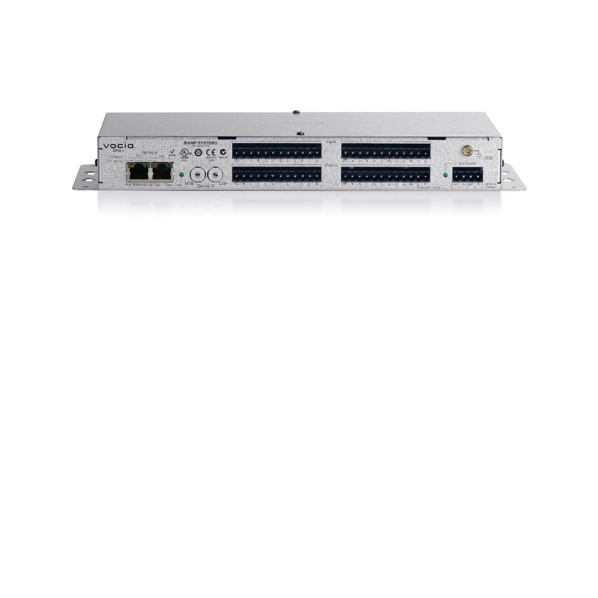 The GPIO-1 provides 16 general purpose inputs and outputs to control various aspects of a Vocia system. The GPIO-1 is a monitored device and can be used with an LSI-16e in life safety applications where more logic inputs or outputs are required. The GPIO-1 has dual powering from PoE Ethernet ports and alternate powering from dual 24V DC inputs. In the event of power loss, changeover between power sources will provide uninterrupted operation.