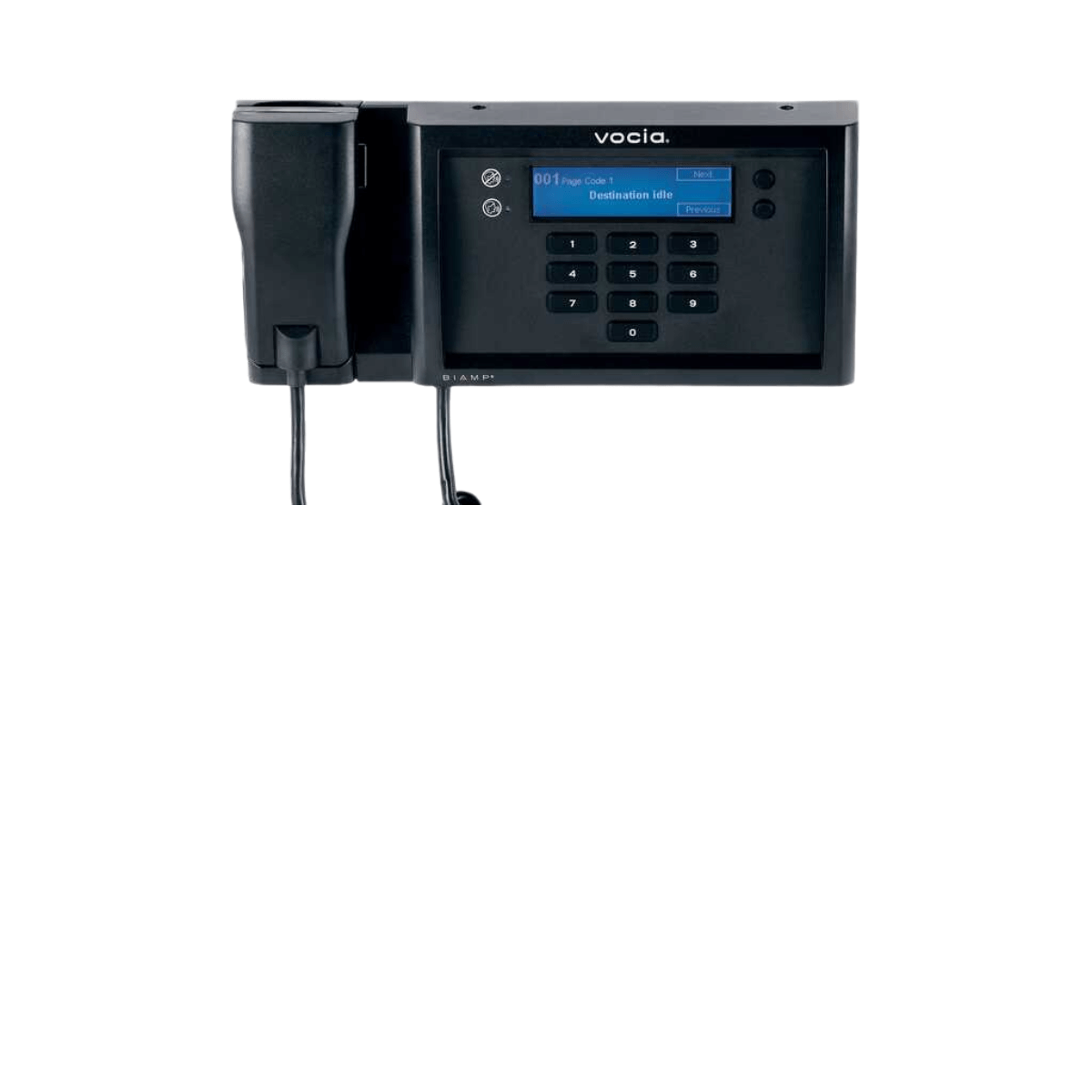 The Vocia WS-10 is a wall-mounted networked paging station that supports both standard and advanced public address functionality. Featuring embedded DSP, PoE, and on-board memory, all device-specific configuration information is stored locally, which means the WS-10 does not rely on a centralized controller for processing and page routing.